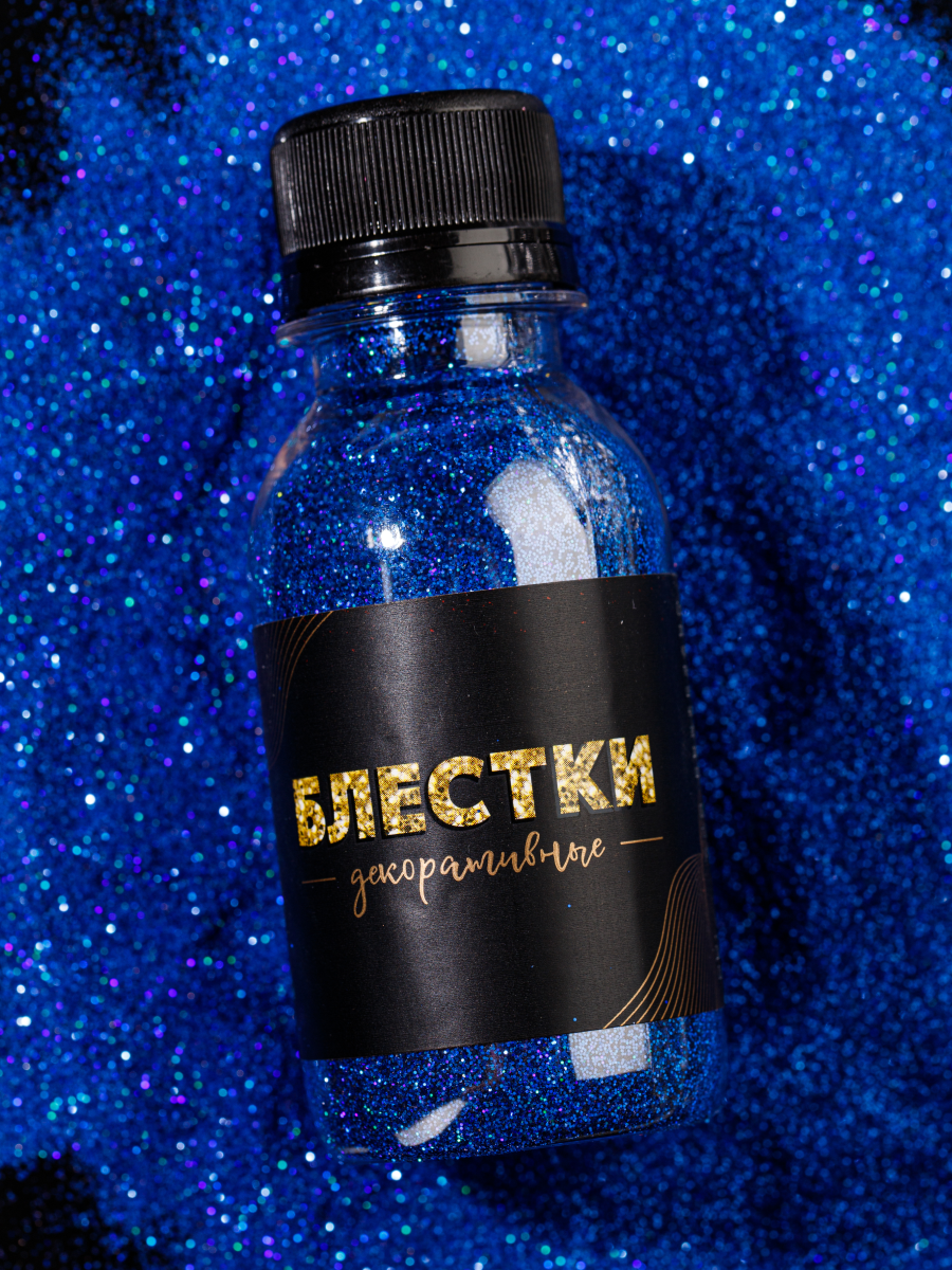 Глиттер блестки для декора и творчества 100 гр. синие голографические 0.2 мм глиттерика 100 мл информация: