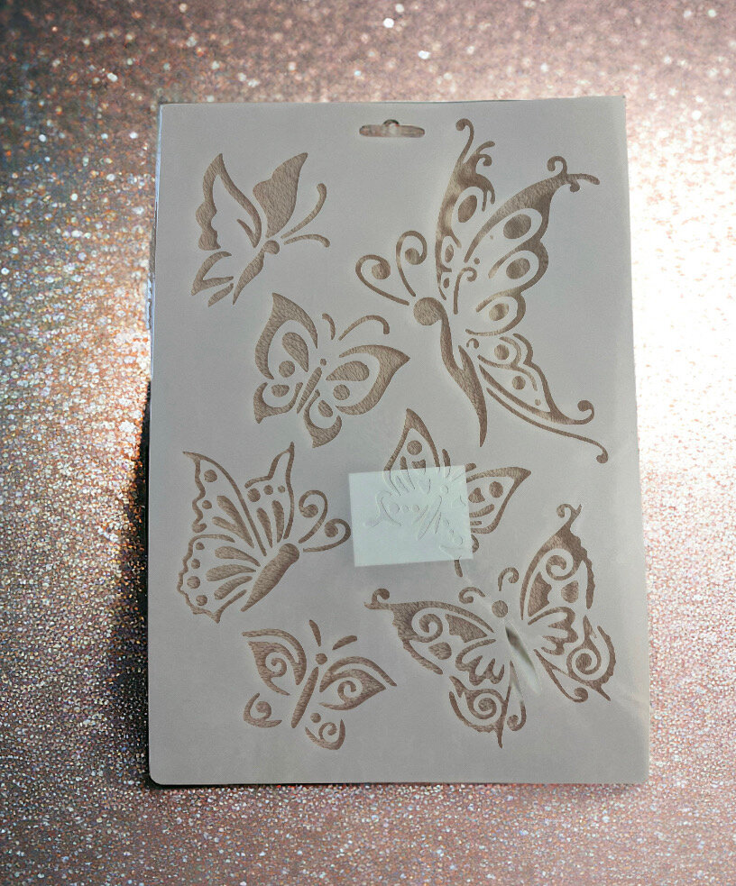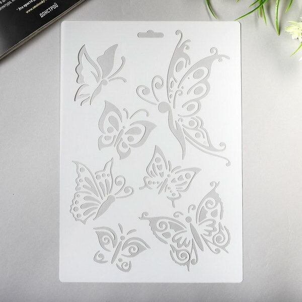 10 цен на Трафарет пластик "Рой бабочек" 21х31 см