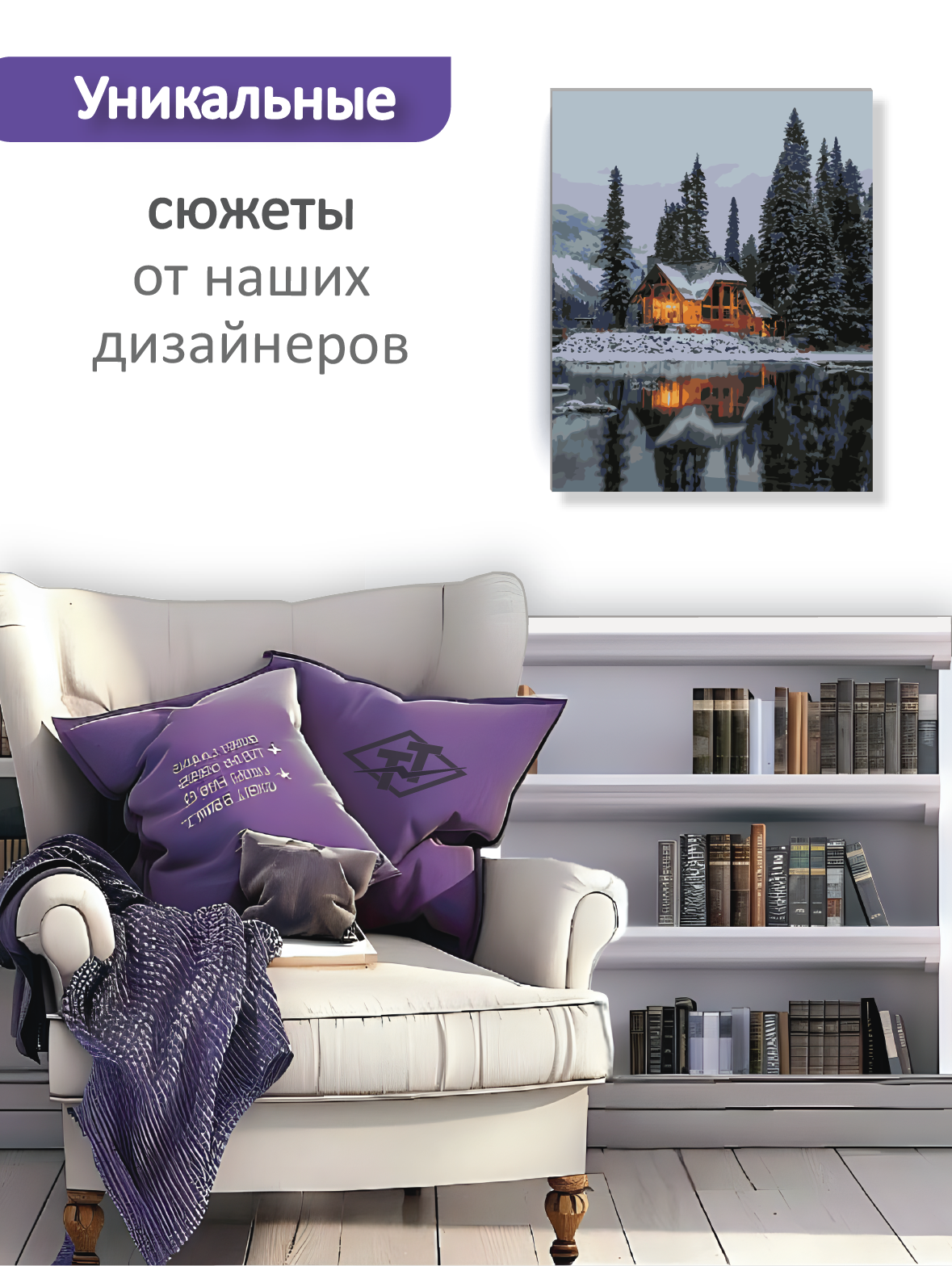 Отзывы на Картина по номерам "Домик в лесу", Холст на подрамнике 40х50, зимний пейзаж