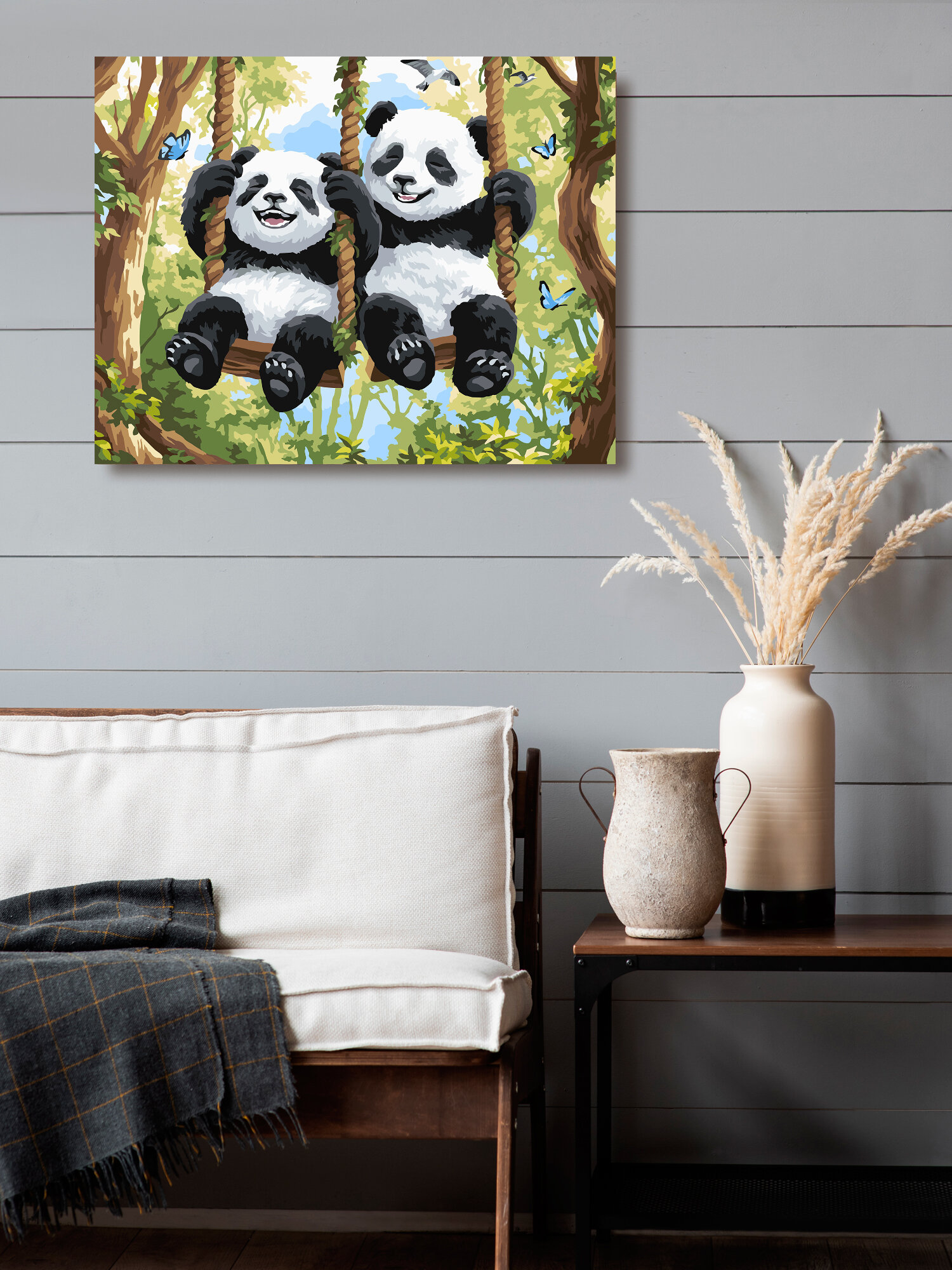 10 цен на Картина по номерам на холсте 40х50 см "Панды на качелях"