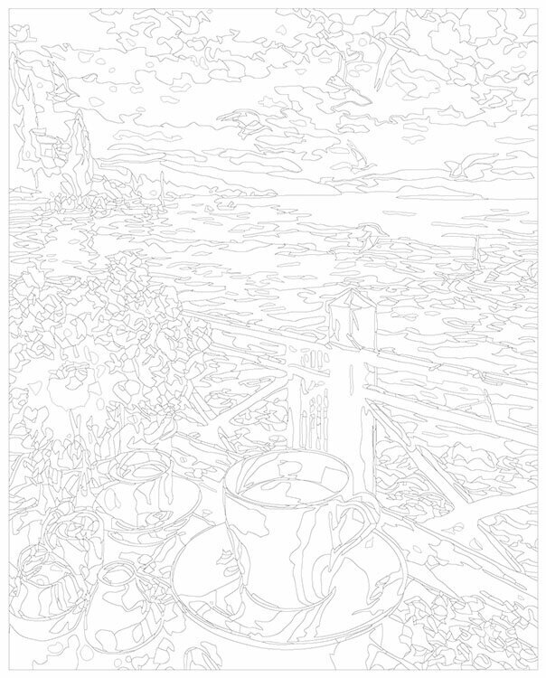 Картина по номерам на холсте с подрамником "Море: Веранда с цветами и видом на залив 2" Раскраска 40x50 см, Террасы 1 340 ₽