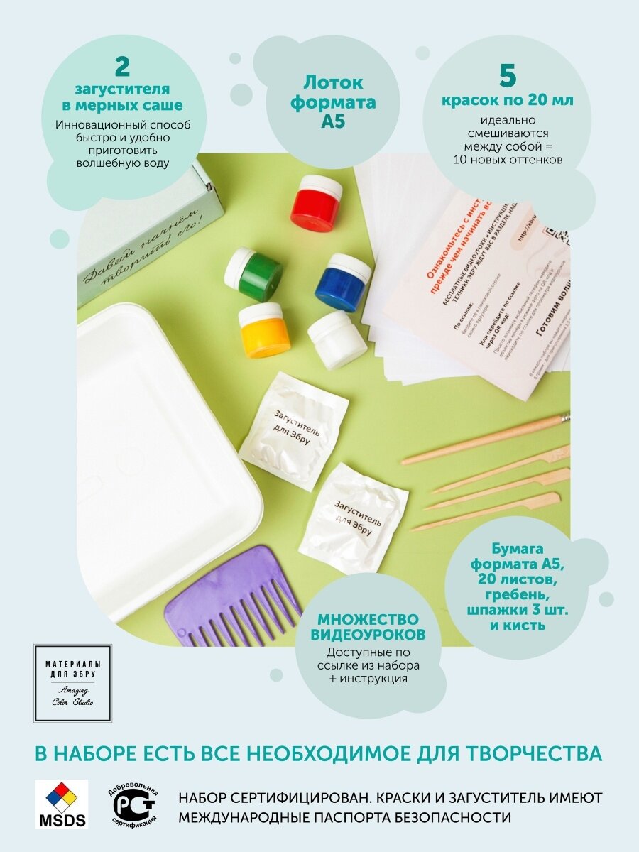 | Наименование набора для творчества | Amazing Color НАБОР ЭБРУ ЧУДО - 5 ЦВЕТОВ формат А5 |