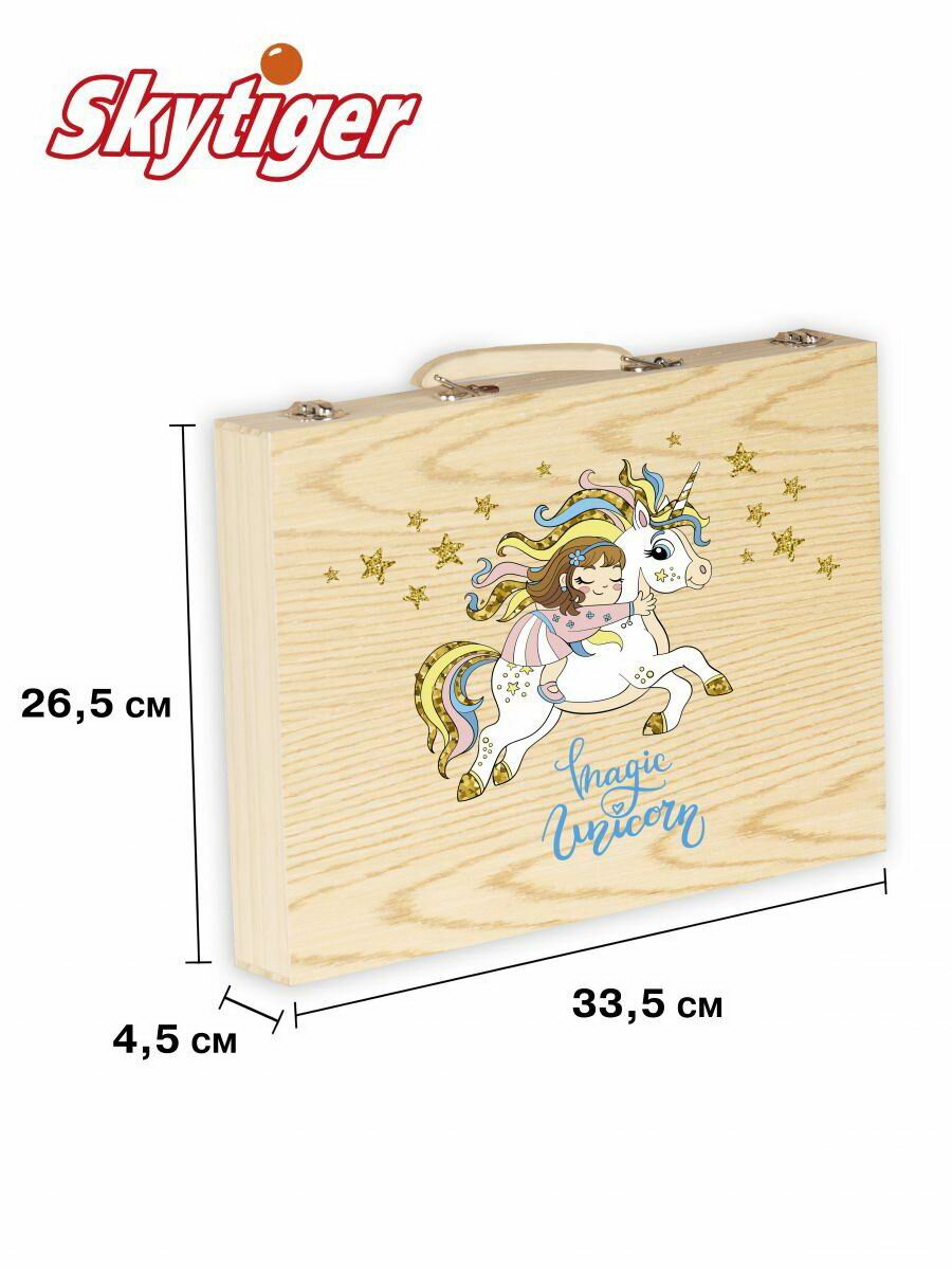 Набор для рисования SKYTIGER Волшебный единорог в деревянном чемодане 100 предметов 38906-8 информация: