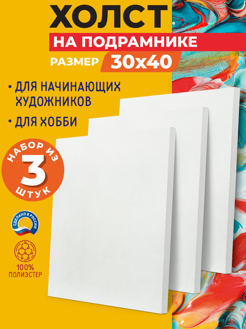 10 цен на Холсты для рисования на подрамнике 30х40 см для рисования. Набор 3 штуки