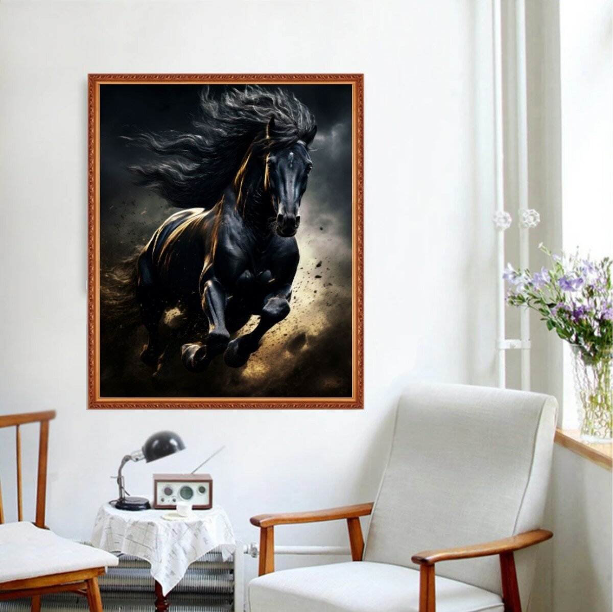 Алмазная мозаика 40x50 см на холсте с подрамником. Целеустремленный черный конь информация: