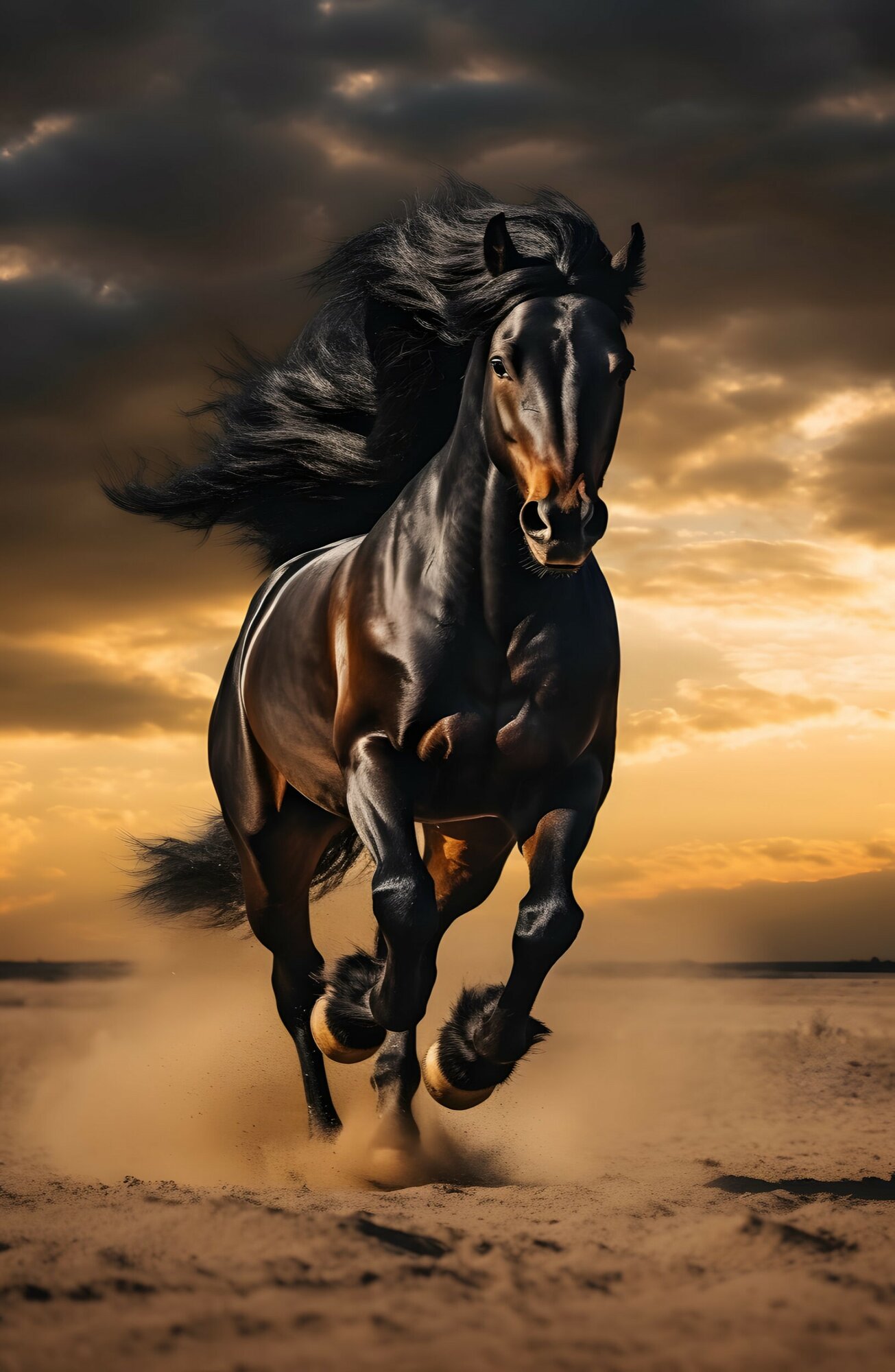 Алмазная мозаика 40x50 см на холсте с подрамником. Целеустремленный черный конь 1 390 ₽
