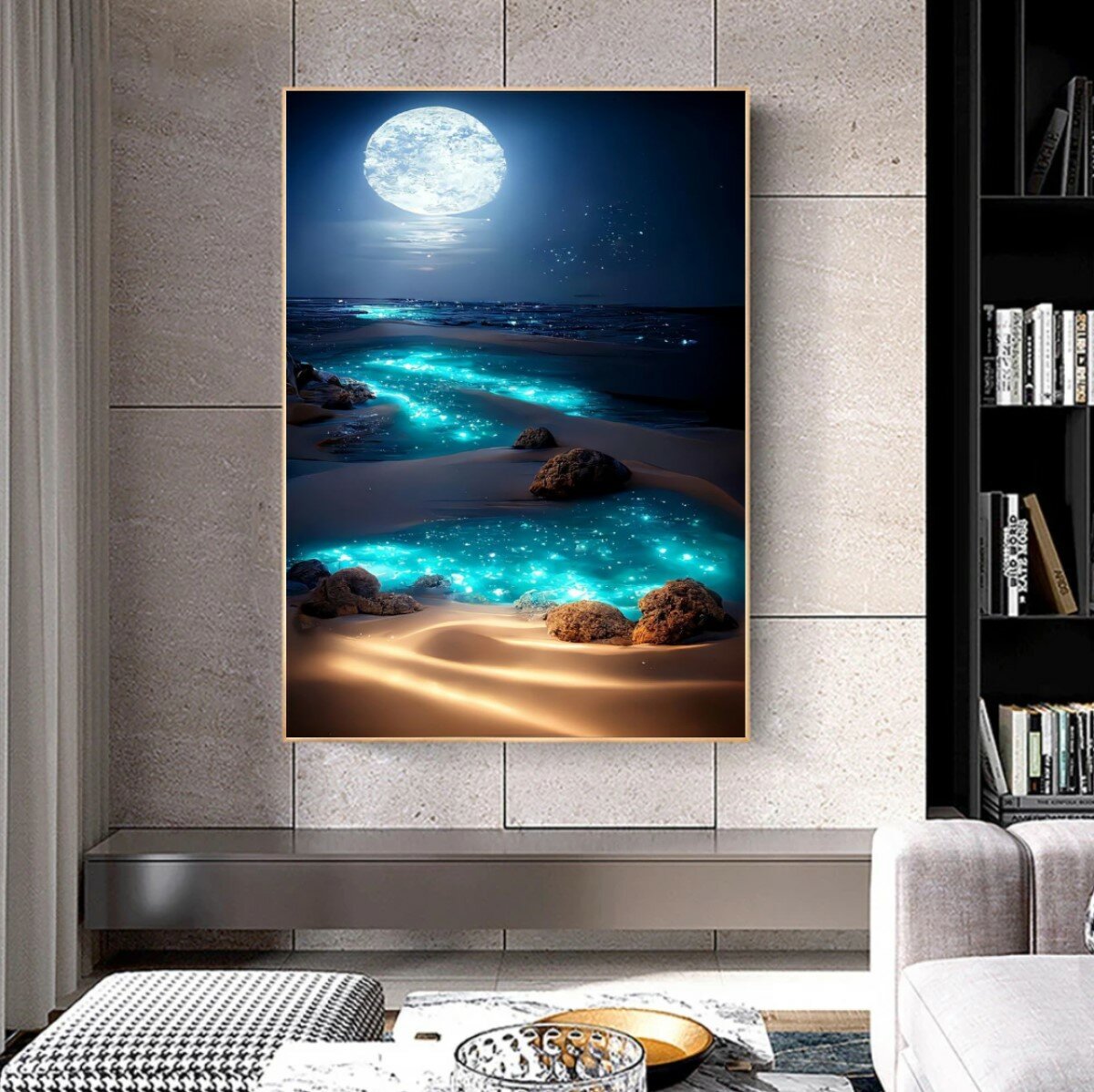 Алмазная мозаика 40x50 см на холсте с подрамником. Золотистый месяц над морем 1 390 ₽