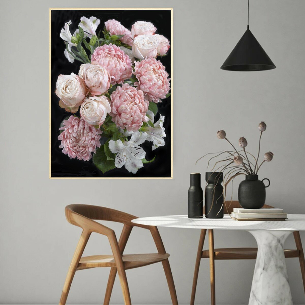 10 цен на Алмазная мозаика 40x50 см на холсте с подрамником. Цветочная композиция на черном фоне