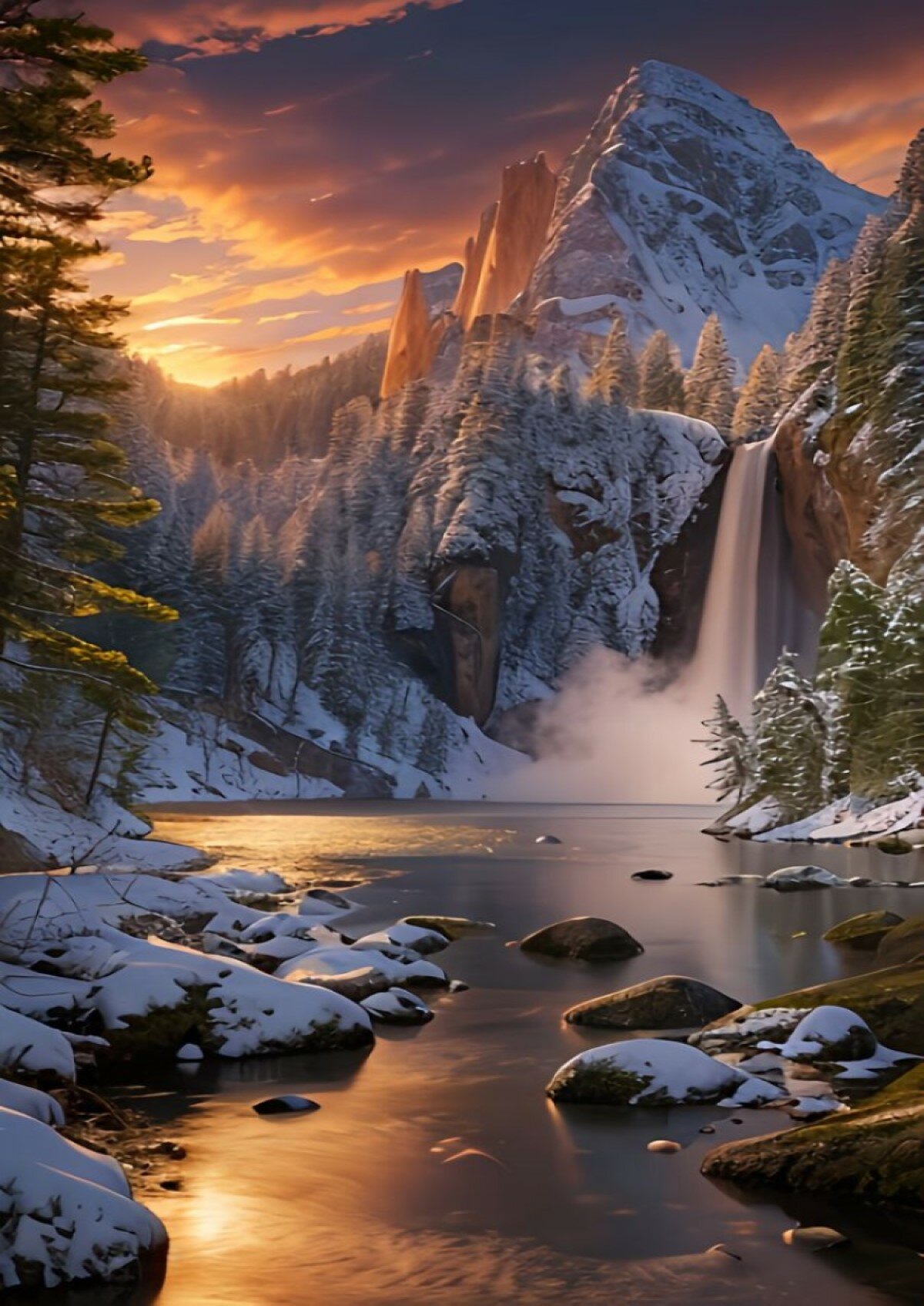 Алмазная мозаика 40x50 см на холсте с подрамником. Водопад в заснеженных горах информация: