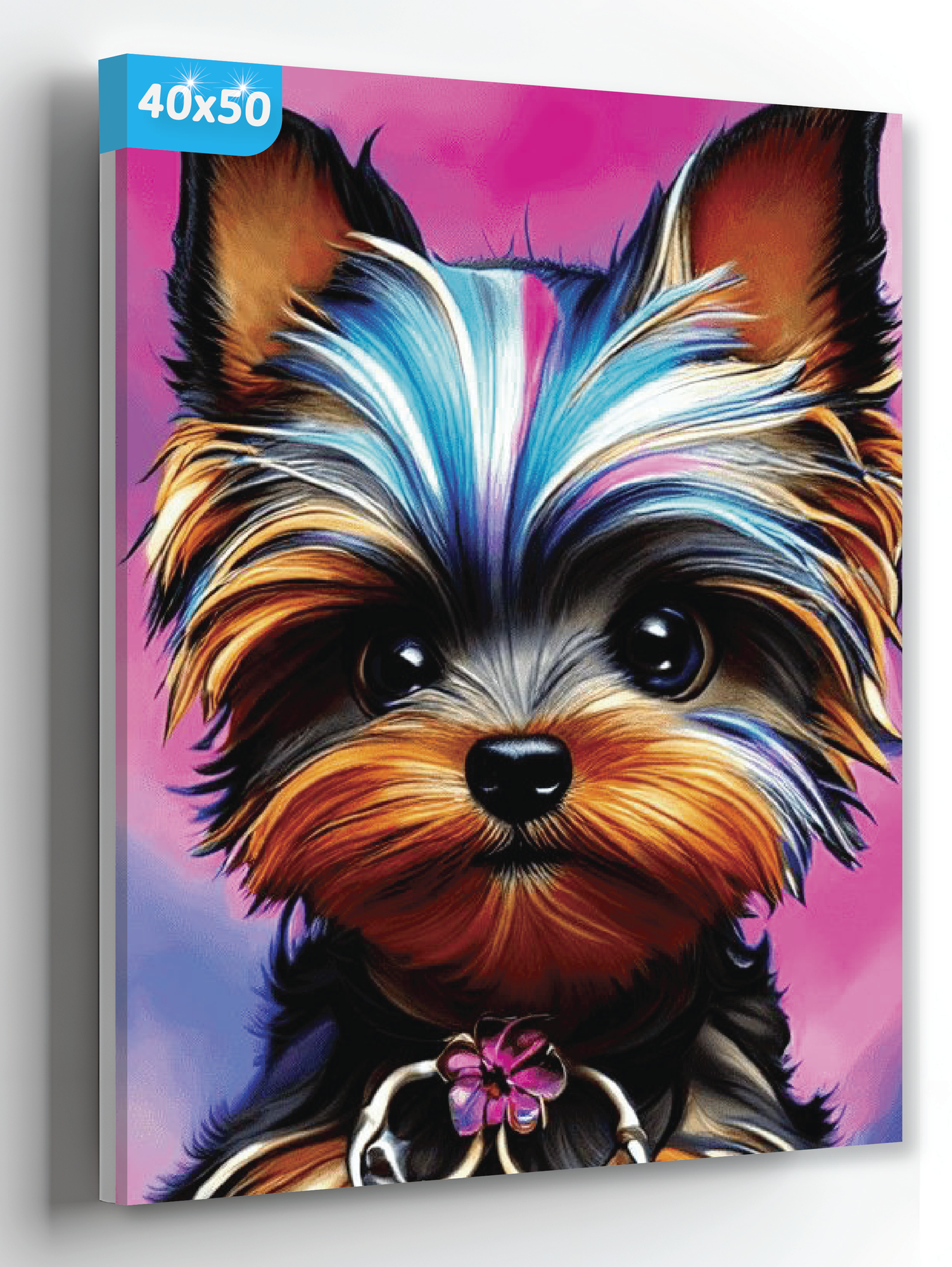 Алмазная мозаика на подрамнике "Йоркширский терьер №2" , 40х50 см, Вышивка круглыми стразами, Набор для творчества, Полная выкладка "ТТ"