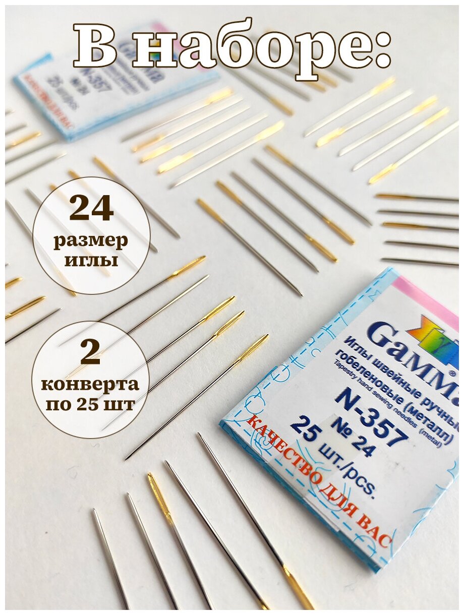 Отзывы на Иглы Gamma №24 набор из 2 уп закругленные для шитья и вышивания, ручные с большим ушком, швейные с тупым кончиком, гобеленовые (N-357)