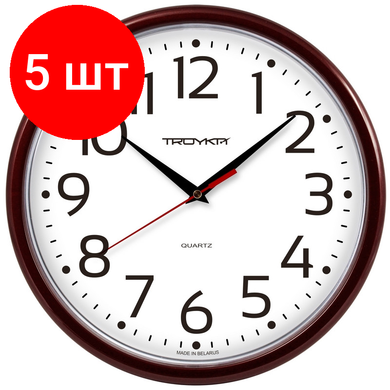 Комплект 5 шт, Часы настенные TROYKA 91931912, круг, белые, коричневая рамка, 23х23х4 см 4 355 ₽