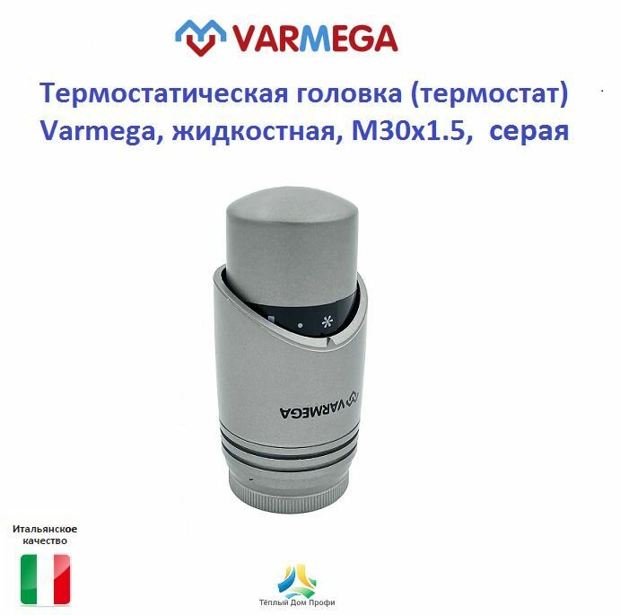 Термостатическая головка (термоголовка) Varmega, жидкостная, M30х1.5, серая информация: