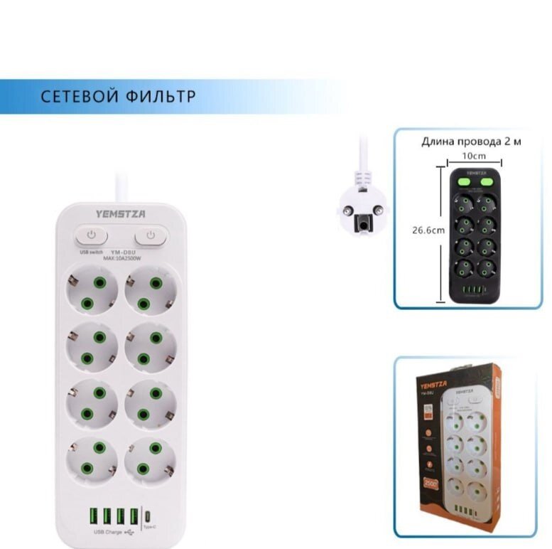 | Дополнительная информация | Удлинитель сетевой фильтр с USB зарядкой |