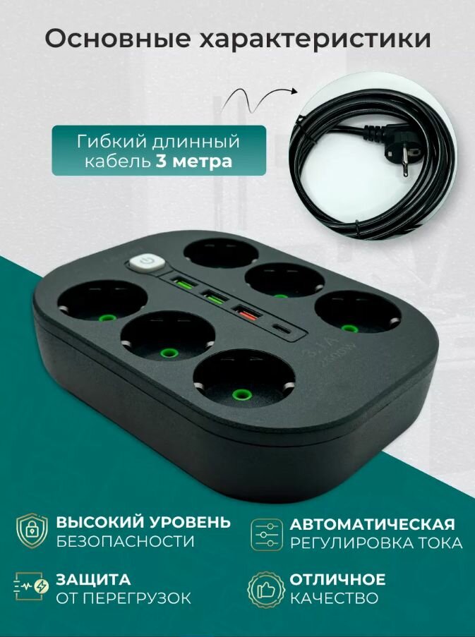 | Дополнительная информация | usb удлинитель с 6 евро розетками с предохранителем и заземлением |