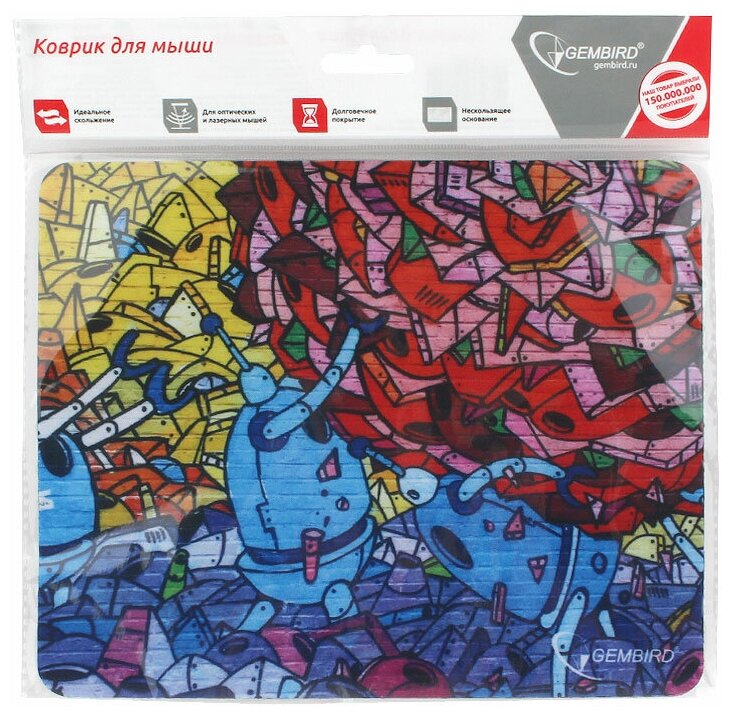 Коврик для мыши Gembird MP-ROBO, рисунок "роботы", размеры 220*180*1 мм, полиэстер+резина
