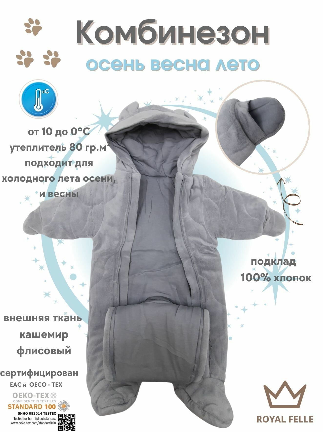 Комбинезон утепленный для новорожденного Royal Felle Easy Grey (серый) размер 80 для новорожденных демисезонный осень зима 3 300 ₽