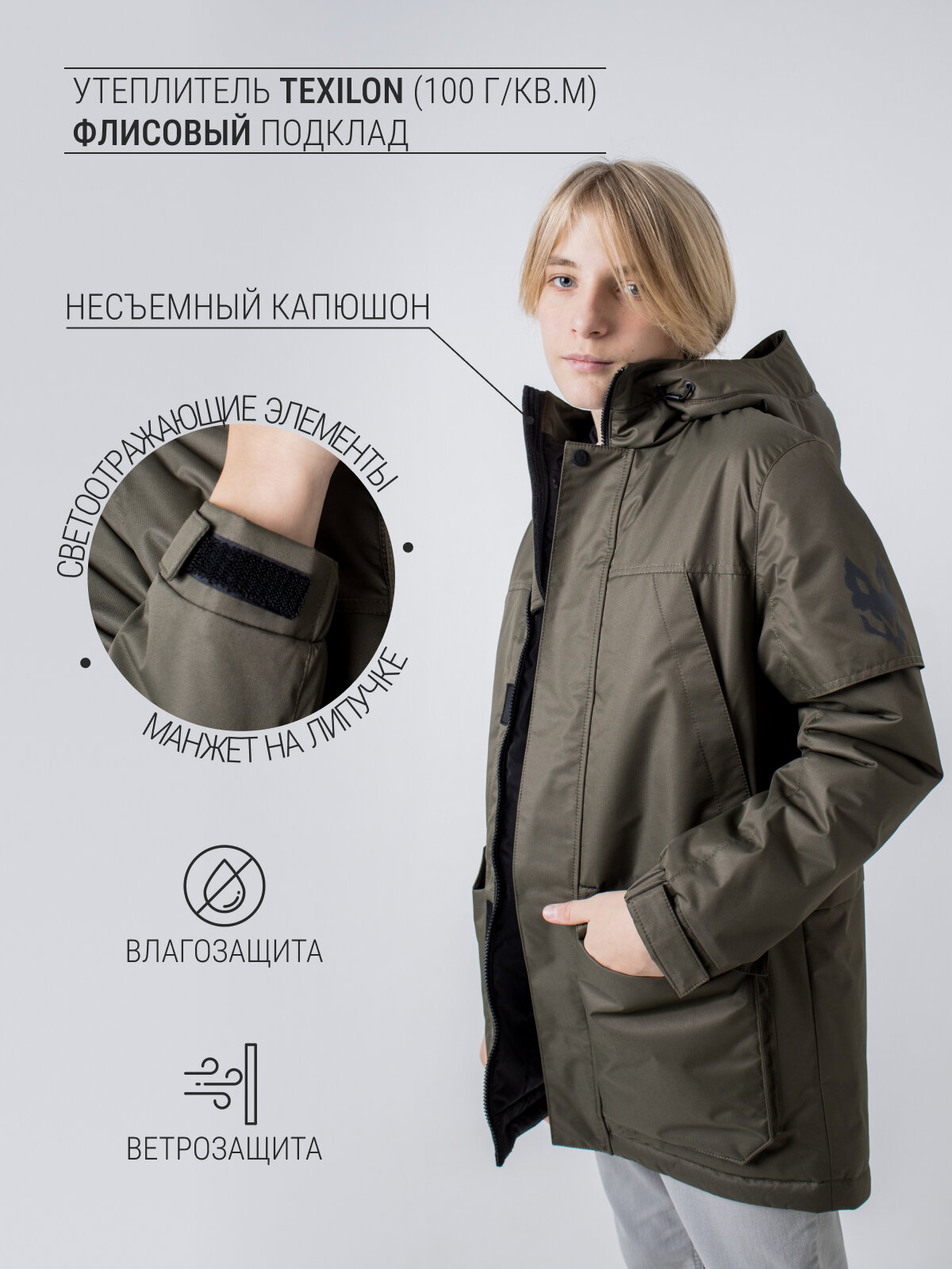Парка демисезонная утепленная подростковая хаки 146 информация: