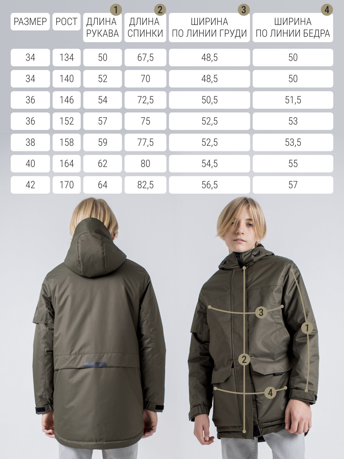 Парка демисезонная утепленная подростковая хаки 140 информация: