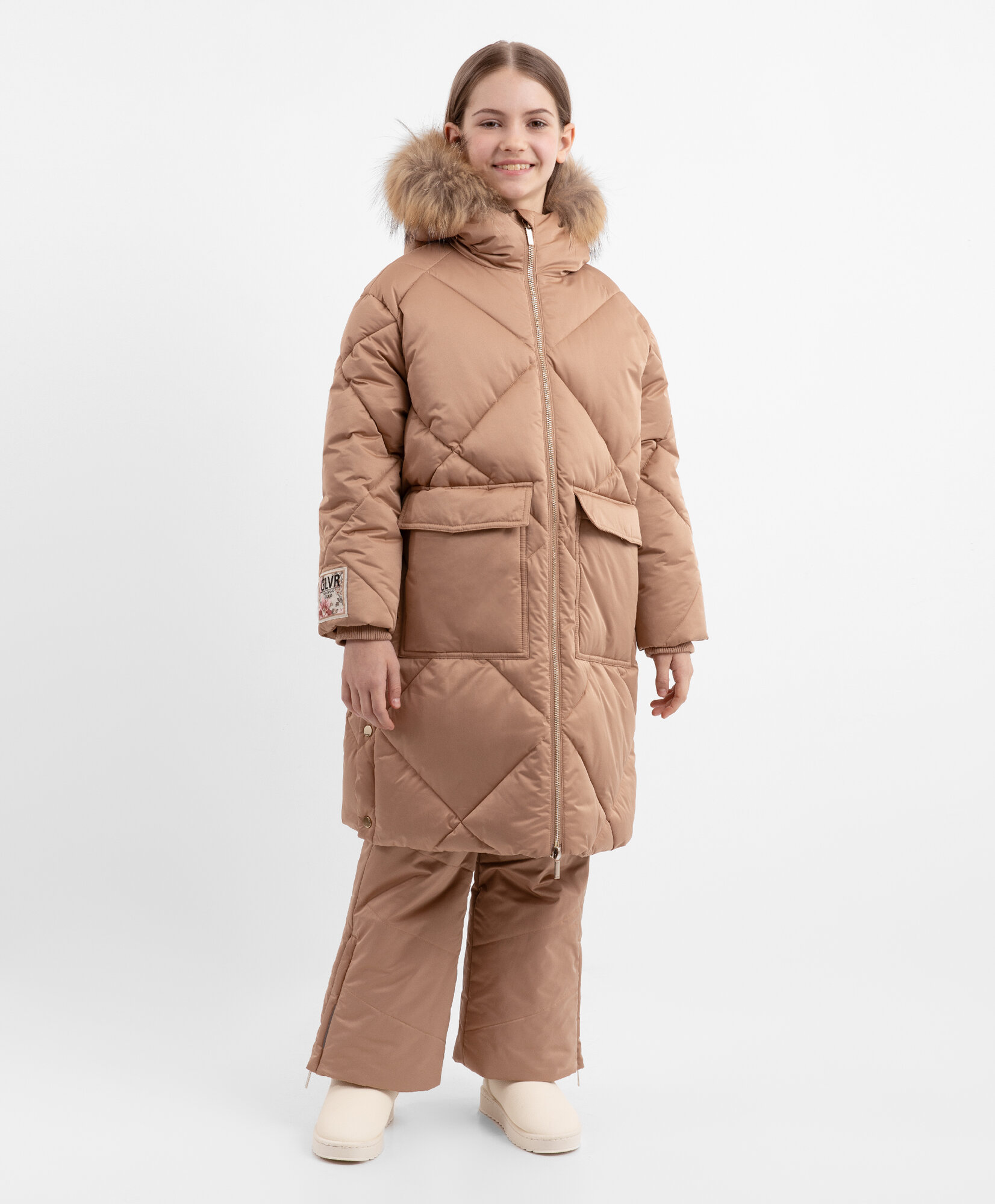 Пальто зимнее на искусственном пуху коричневое для девочки Gulliver, р.164, мод.22408GJC4504 информация: