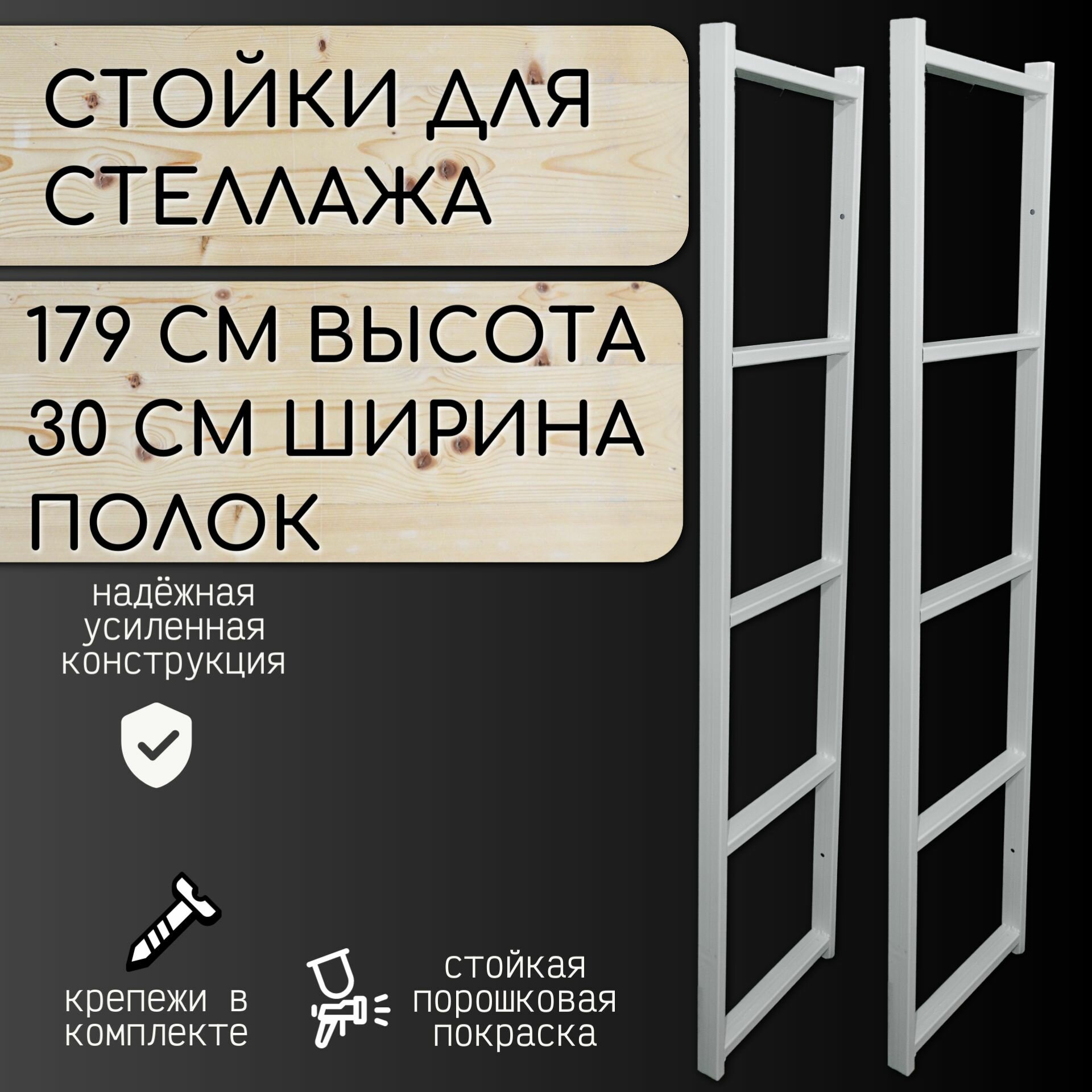 | Комплектация | Стойка стеллажа 179 см белый цвет - 2 штуки |