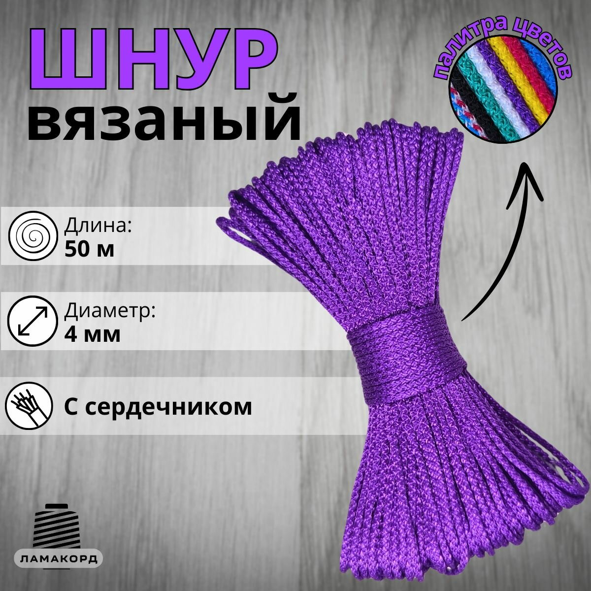 Веревка бельевая 4 мм 50 м фиолетовая. Шнур бельевой вязаный полипропиленовый с сердечником информация: