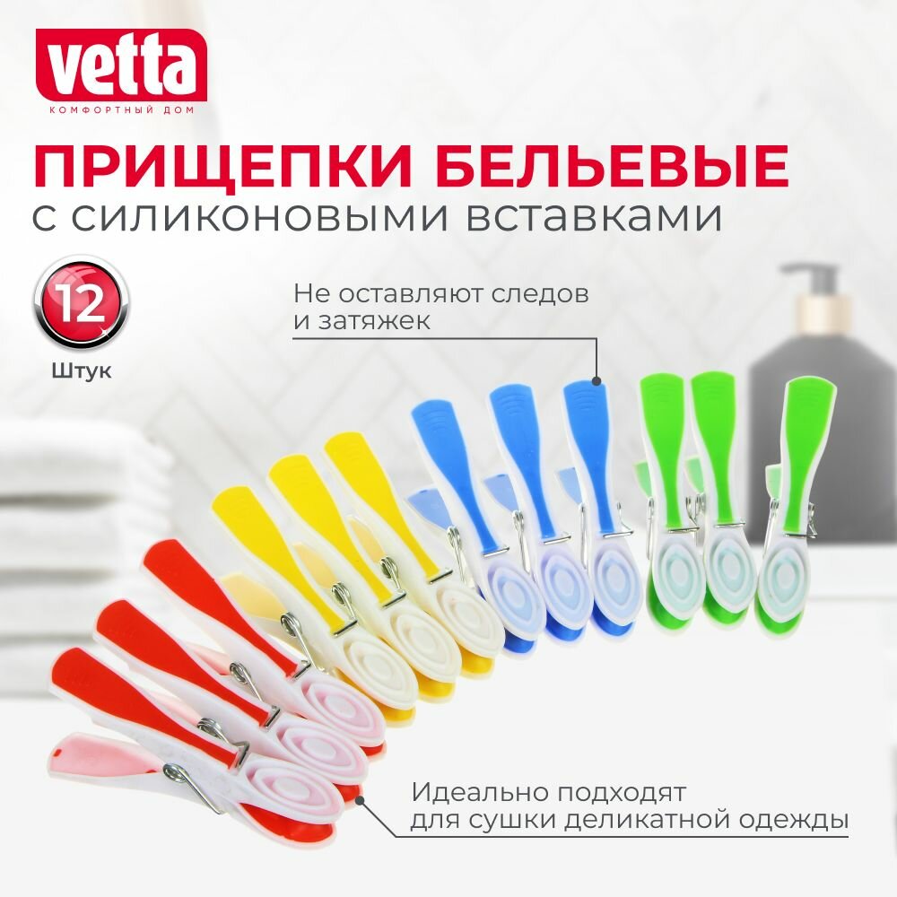 10 цен на VETTA Набор прищепок 12шт с силиконовыми держателями "Радуга" ,пластик