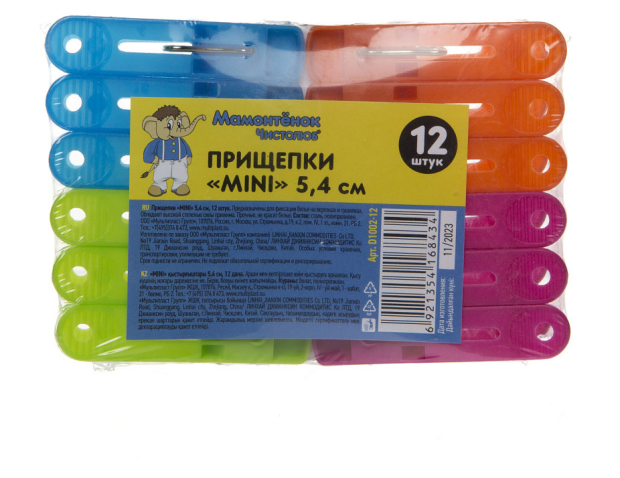 Мамонтенок Чистолюб Прищепки MINI 5.4см набор 12шт D1002-12 информация:
