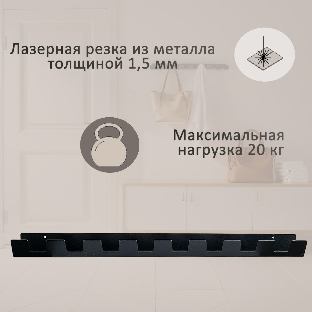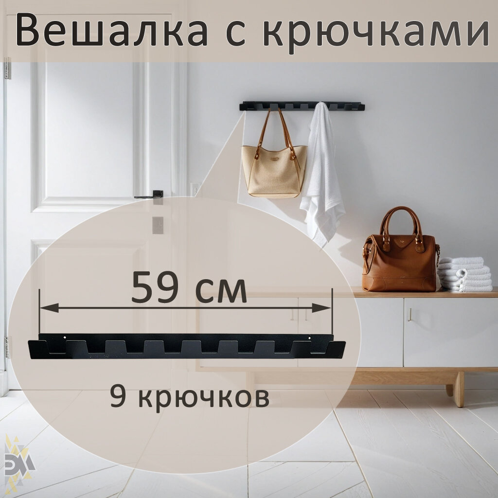 Вешалка настенная с крючками Vivara 9, черная информация: