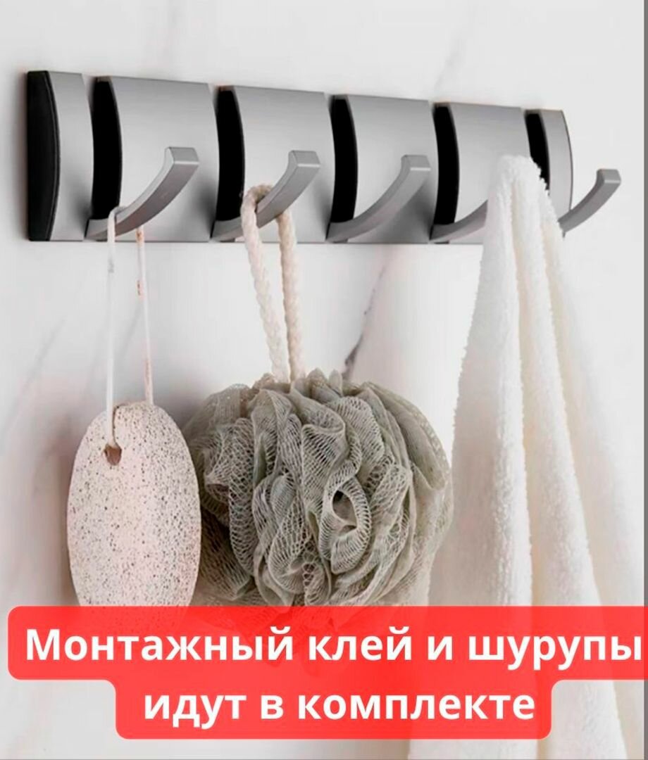 Вешалка настенная металлическая для одежды, полотенец в прихожую, ванную, кухню со складными крючками информация: