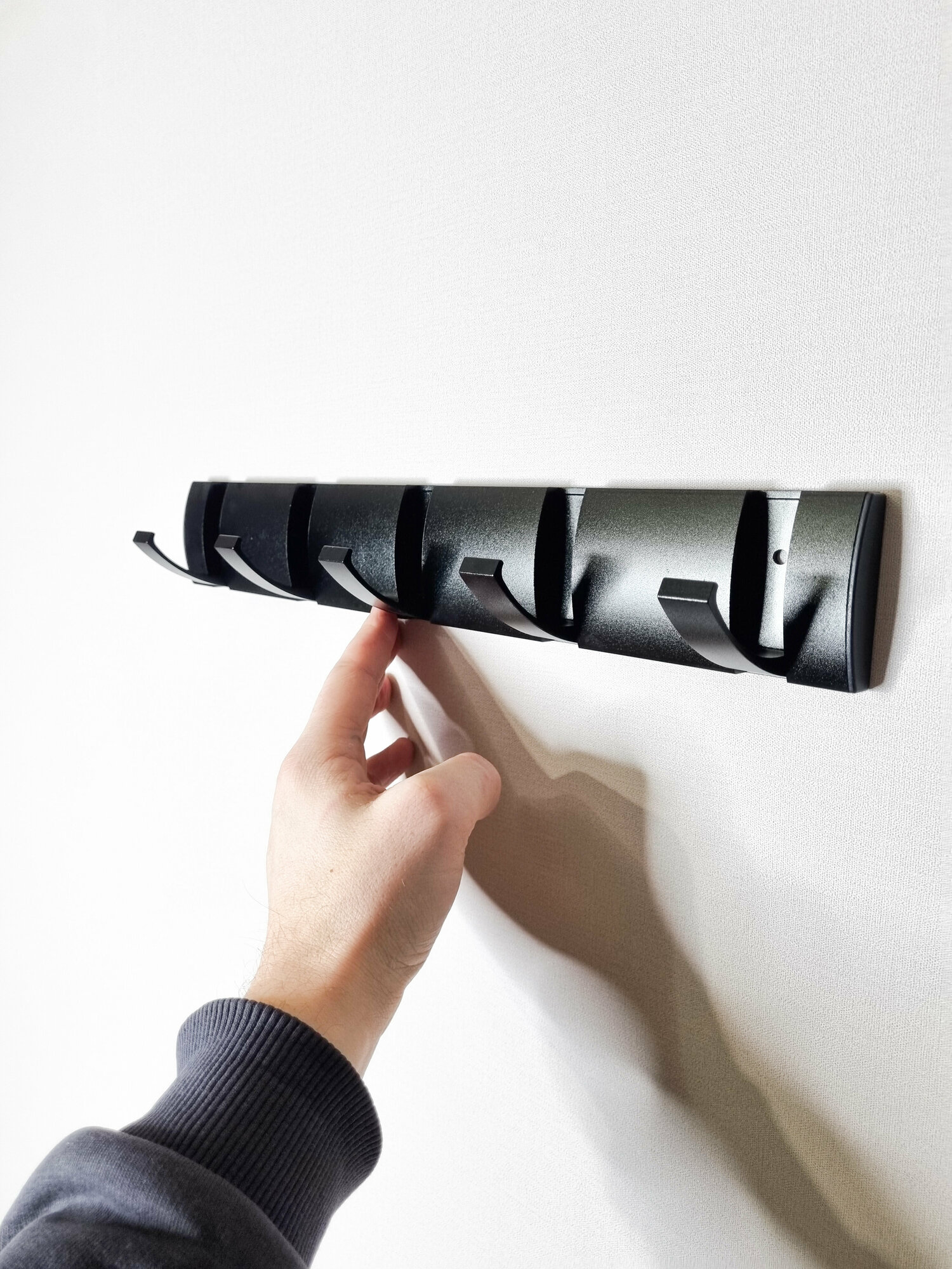 Вешалка настенная металлическая со складными крючками черная/ 5 крючков информация: