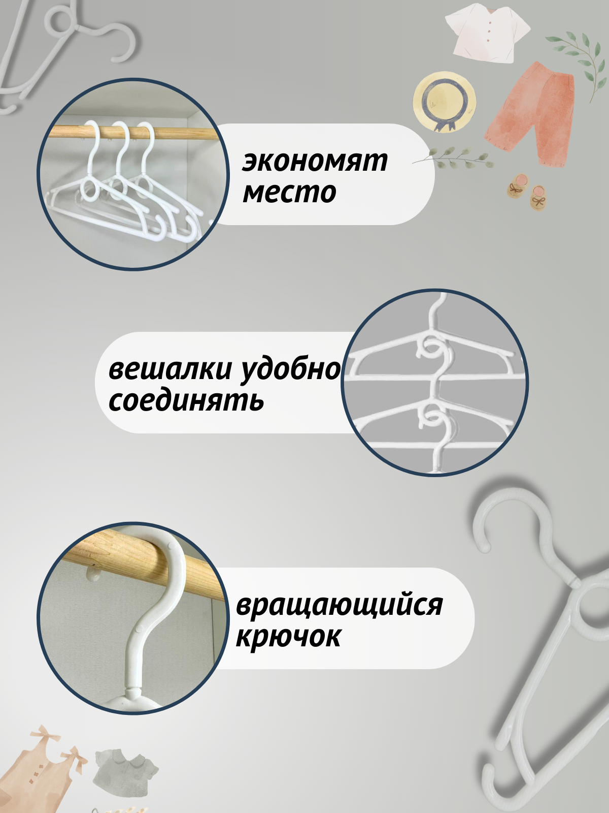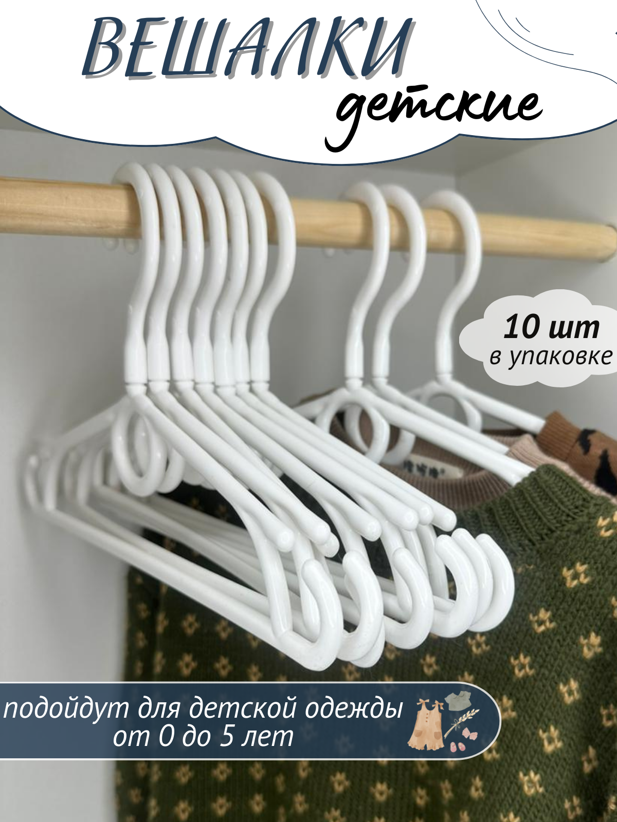 10 цен на Детские пластиковые плечики для одежды белые