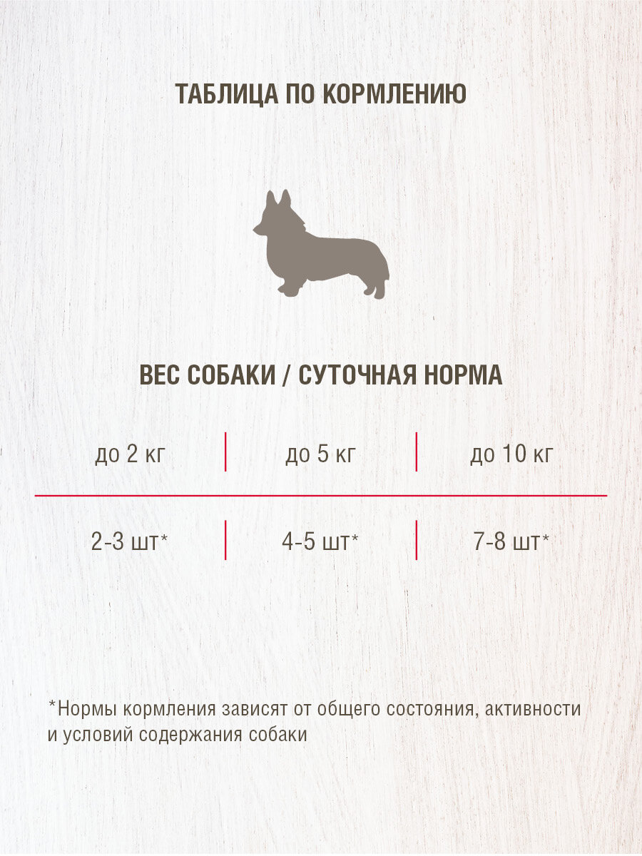 | Дозировка | Рекомендации по кормлению: требуется ½ - 1 пакетик на 1 кг веса взрослой собаки в день. У животного всегда должен быть доступ к свежей питьевой воде. |