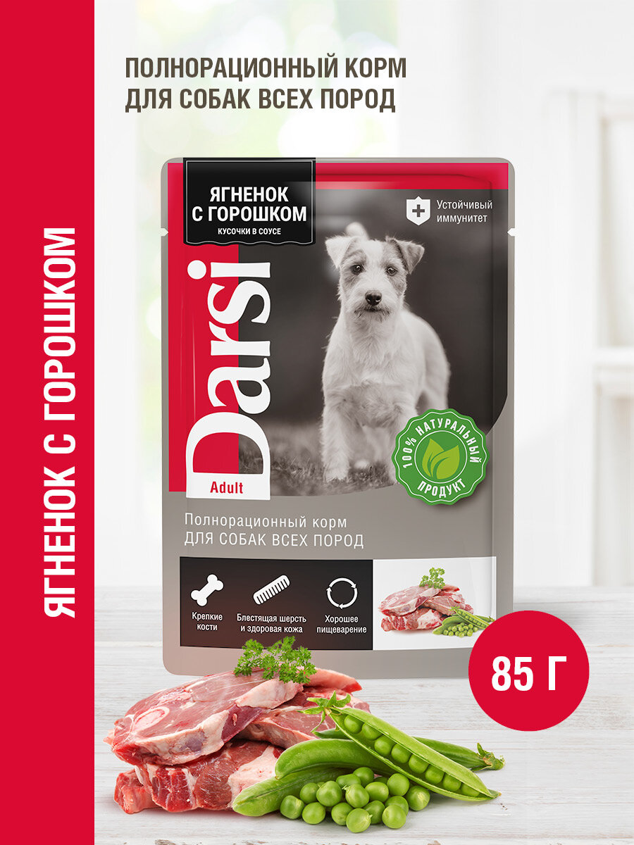 Влажный корм для собак Darsi ягненок, зеленый горошек 1 уп. х 32 шт. х 85 г информация: