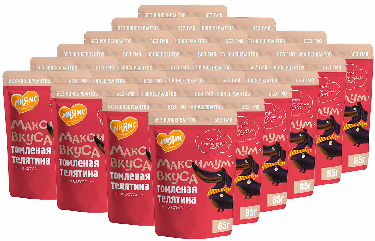 Влажный корм для собак Мнямс Максимум вкуса томленая телятина в соусе 1 уп. х 24 шт. х 85 г информация: