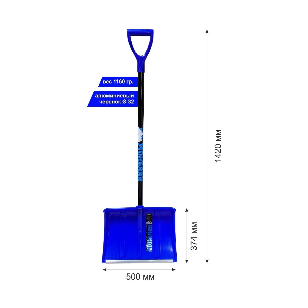 Лопата для снега Монблан пластик 1420*500 эргономический алюминиевый черенок ,V-ручка информация: