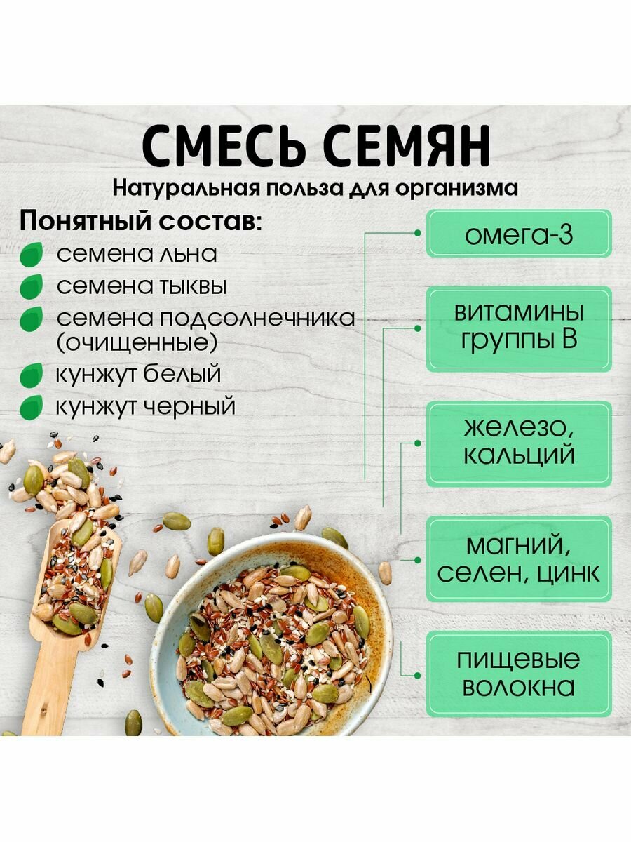 Смесь из 5 семян для салата BIO 1000 г. Семечки для салата. Семена льна, семечки тыквы, семечки подсолнечника, кунжут черный, кунжут белый. информация: