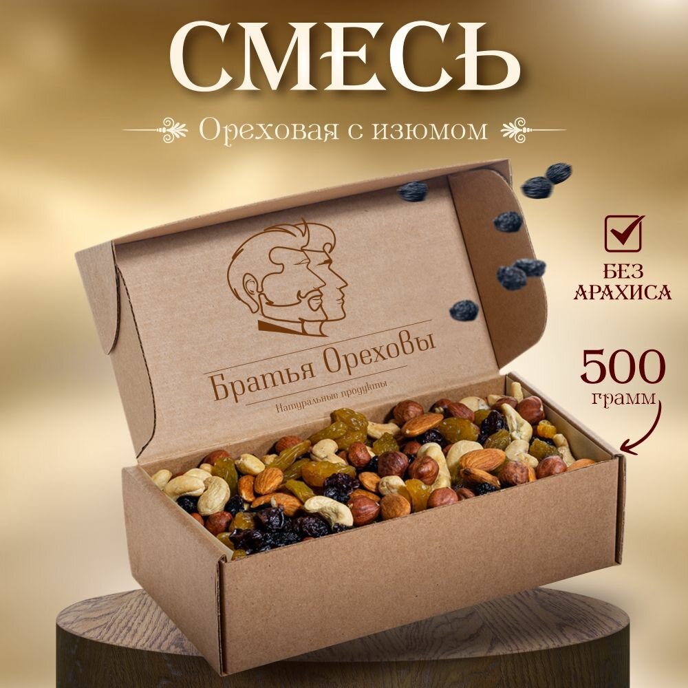 Смесь ореховая с изюмом (Кешью, миндаль, фундук, изюм) Братья Ореховы, 500 г