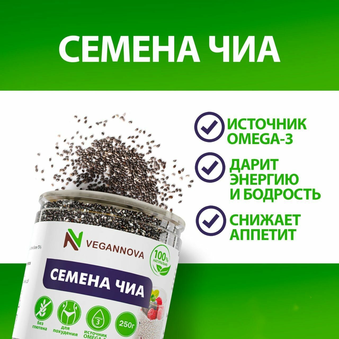 10 цен на VeganNova Семена Чиа для похудения, суперфуд, детокс, 250 г
