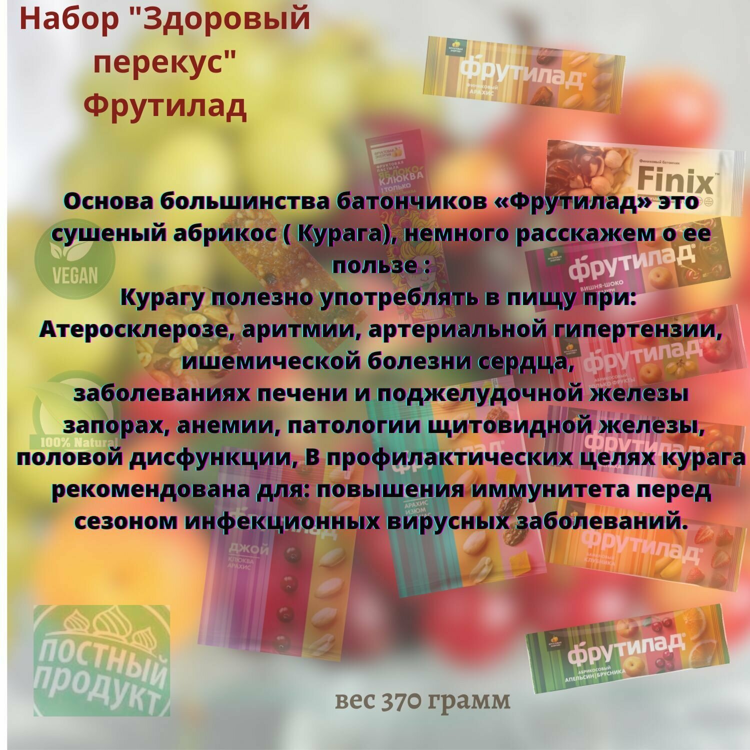 Набор "Здоровый перекус" из натуральных фруктовых и ореховых снеков Фрутилад 370 грамм информация: