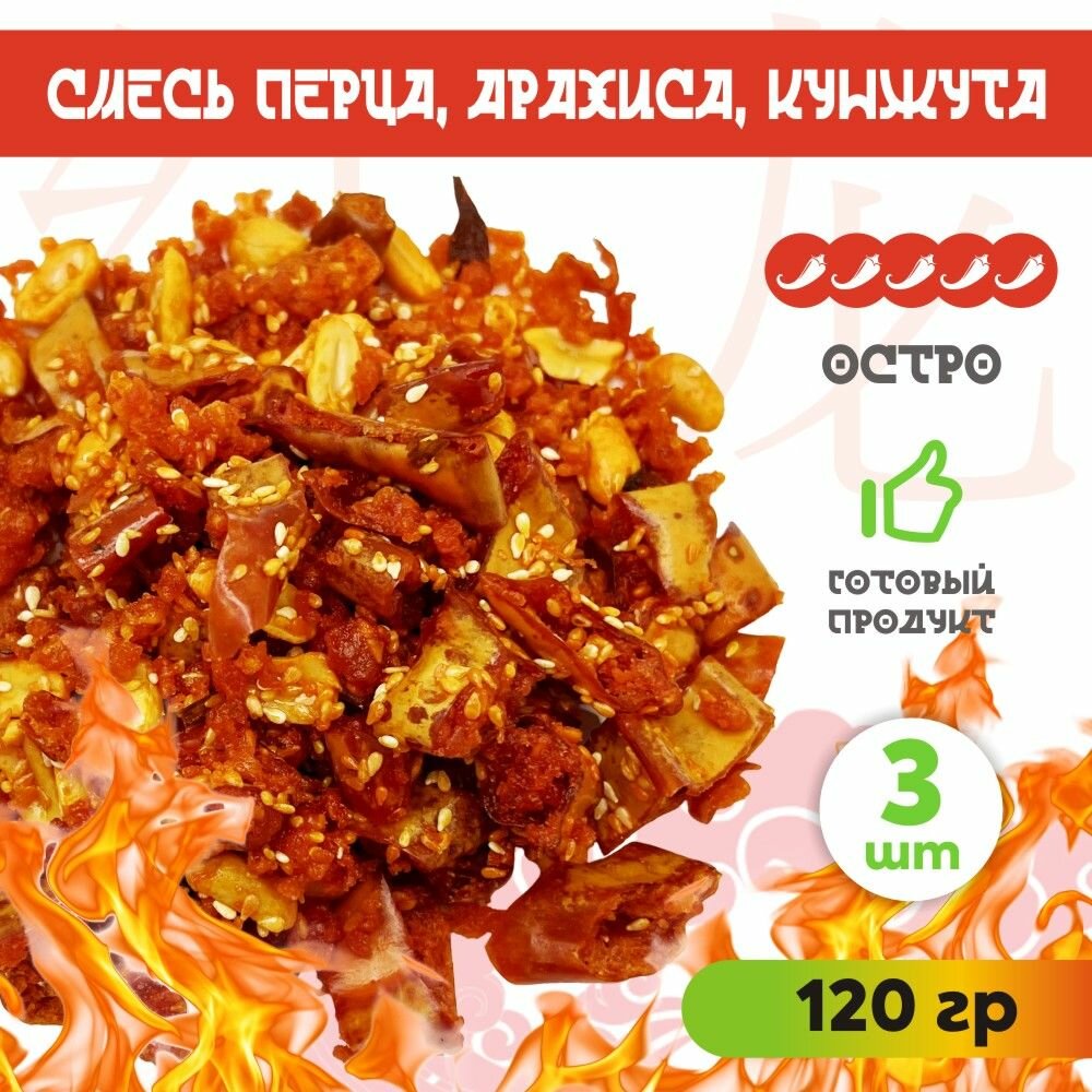 Китайский перчик с арахисом Сианласу (смесь перца, арахиса, кунжута) / 3 шт. в ассортименте по 120 г / 2 желтых + 1 красная информация: