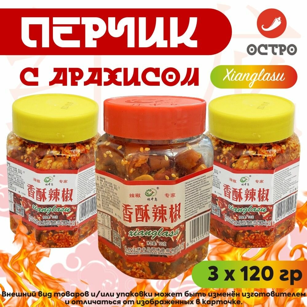 10 цен на Китайский перчик с арахисом Сианласу (смесь перца, арахиса, кунжута) / 3 шт. в ассортименте по 120 г / 2 желтых + 1 красная