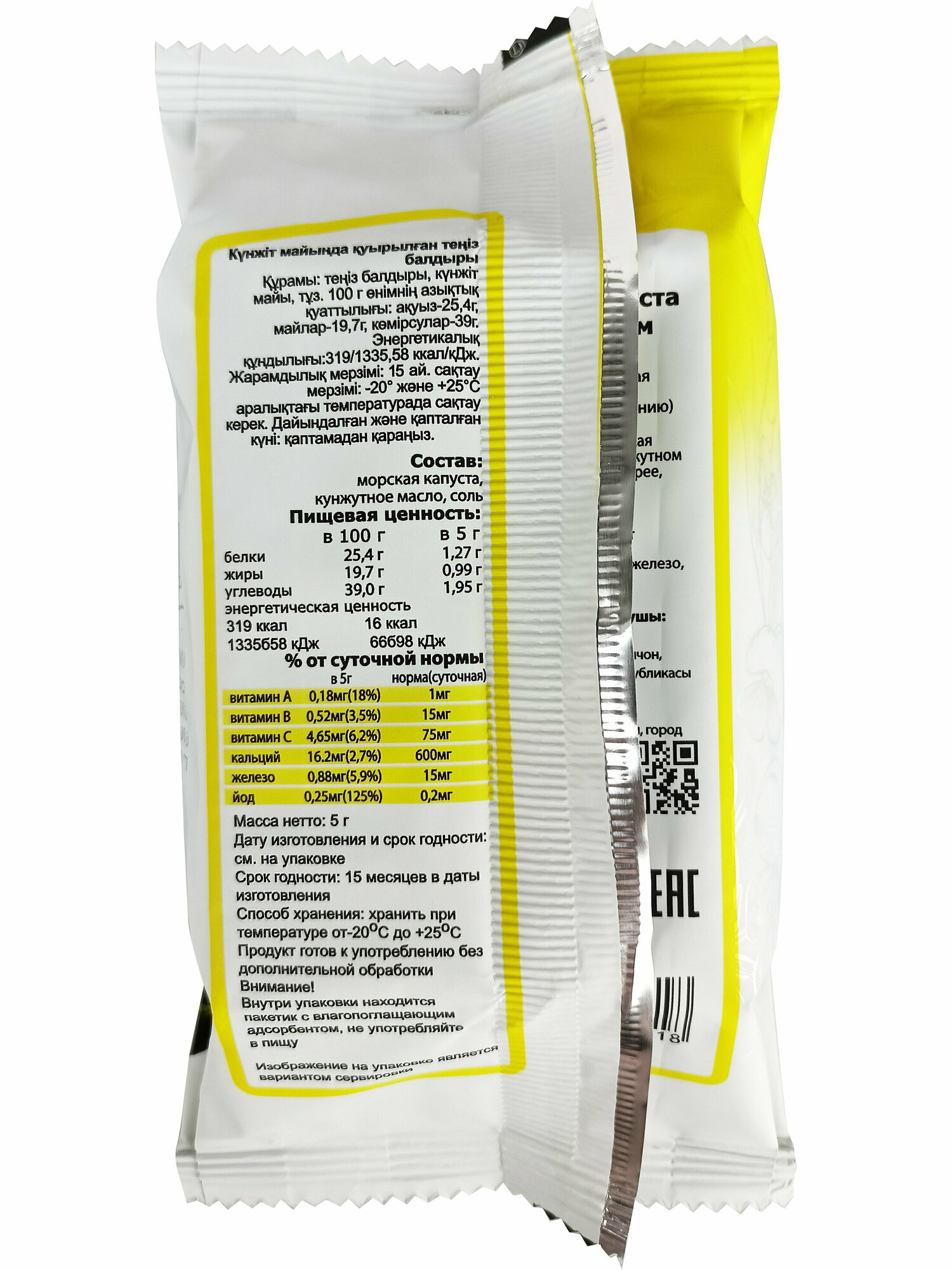 | Состав | Морская капуста, кунжутное масло, соль |