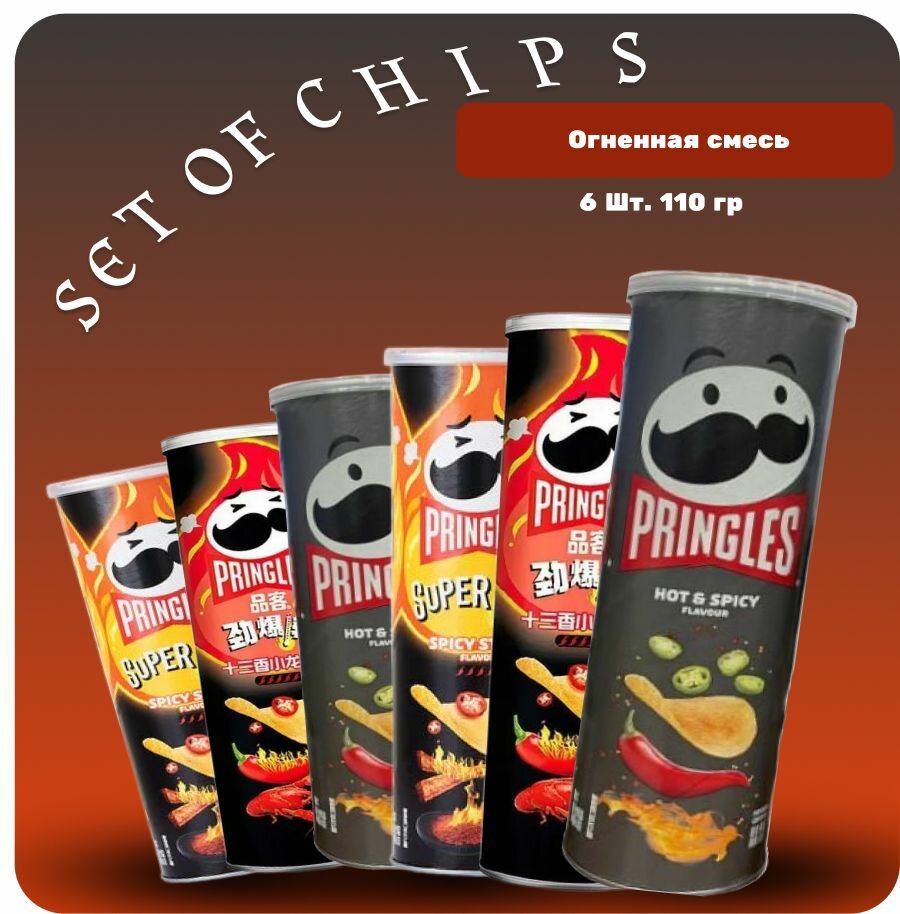 Чипсы pringles набор (Огненная смесь) Острые стрипсы, Острый краб ( Хот и спайси) принглс чипсы 110 грамм. 6 шт. информация:
