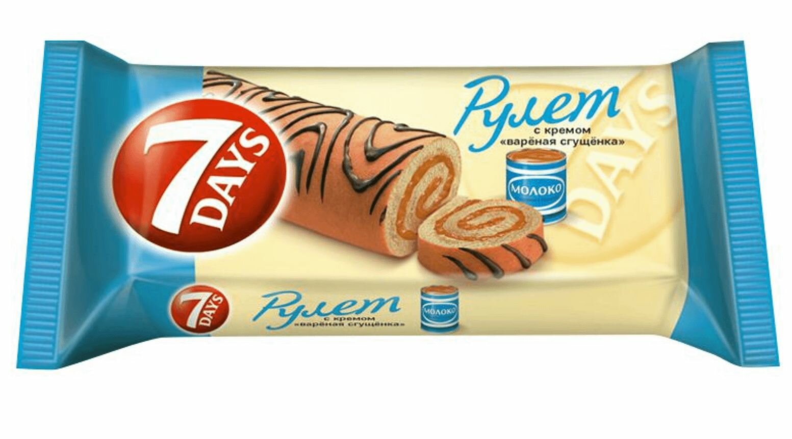 10 цен на 7DAYS Рулет бисквитный с кремом Вареная сгущенка, 300 г, 3 шт