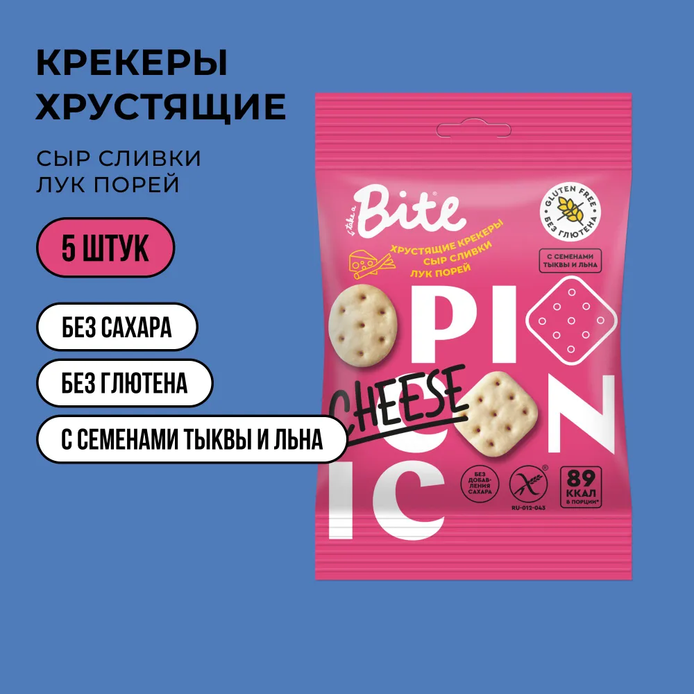 10 цен на Крекеры Take a Bite Picnic, Сыр-сливки-лук порей, без глютена, 5 шт по 60 гр