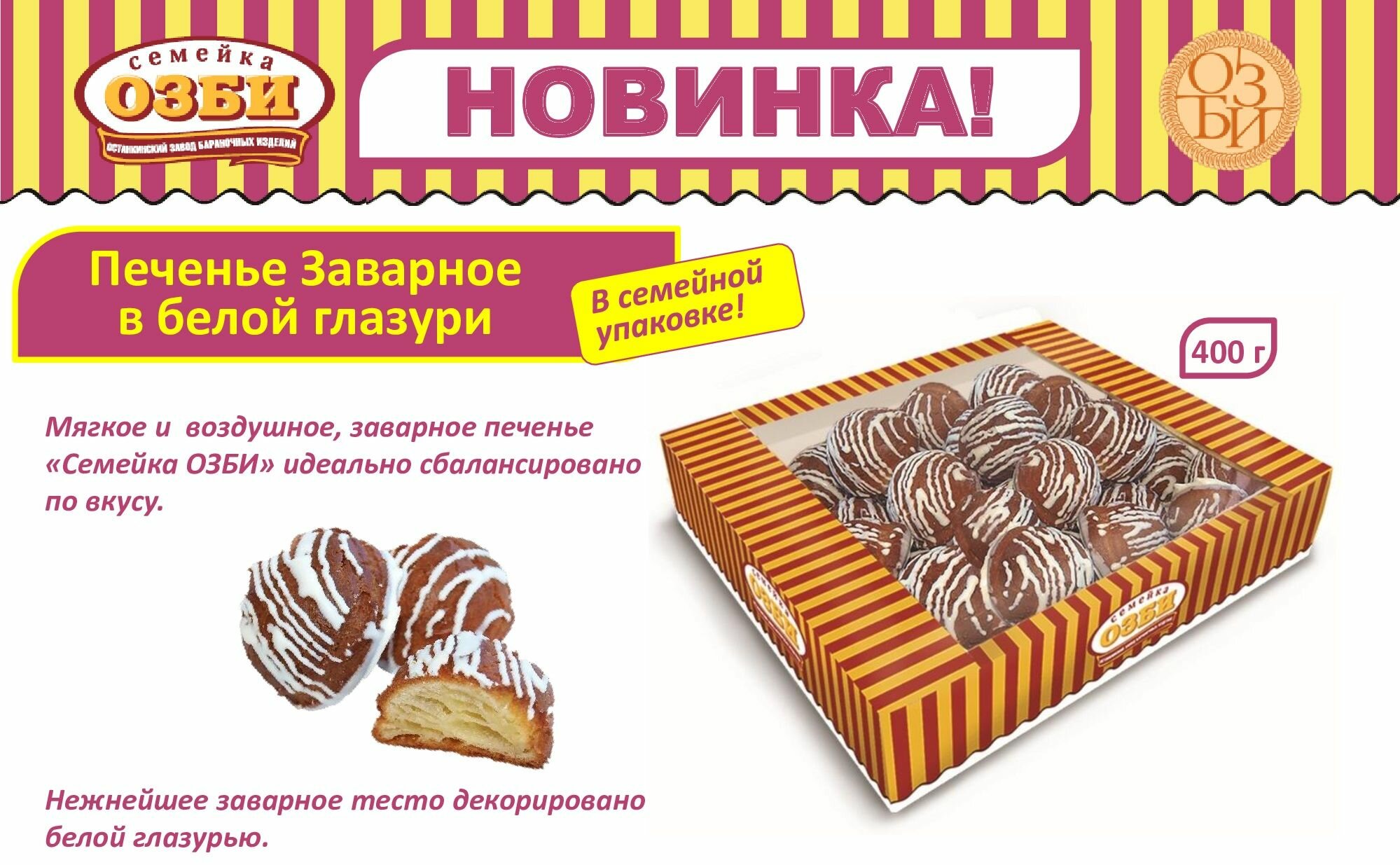 Печенье заварное в белой глазури "Семейка озби", 400 г информация: