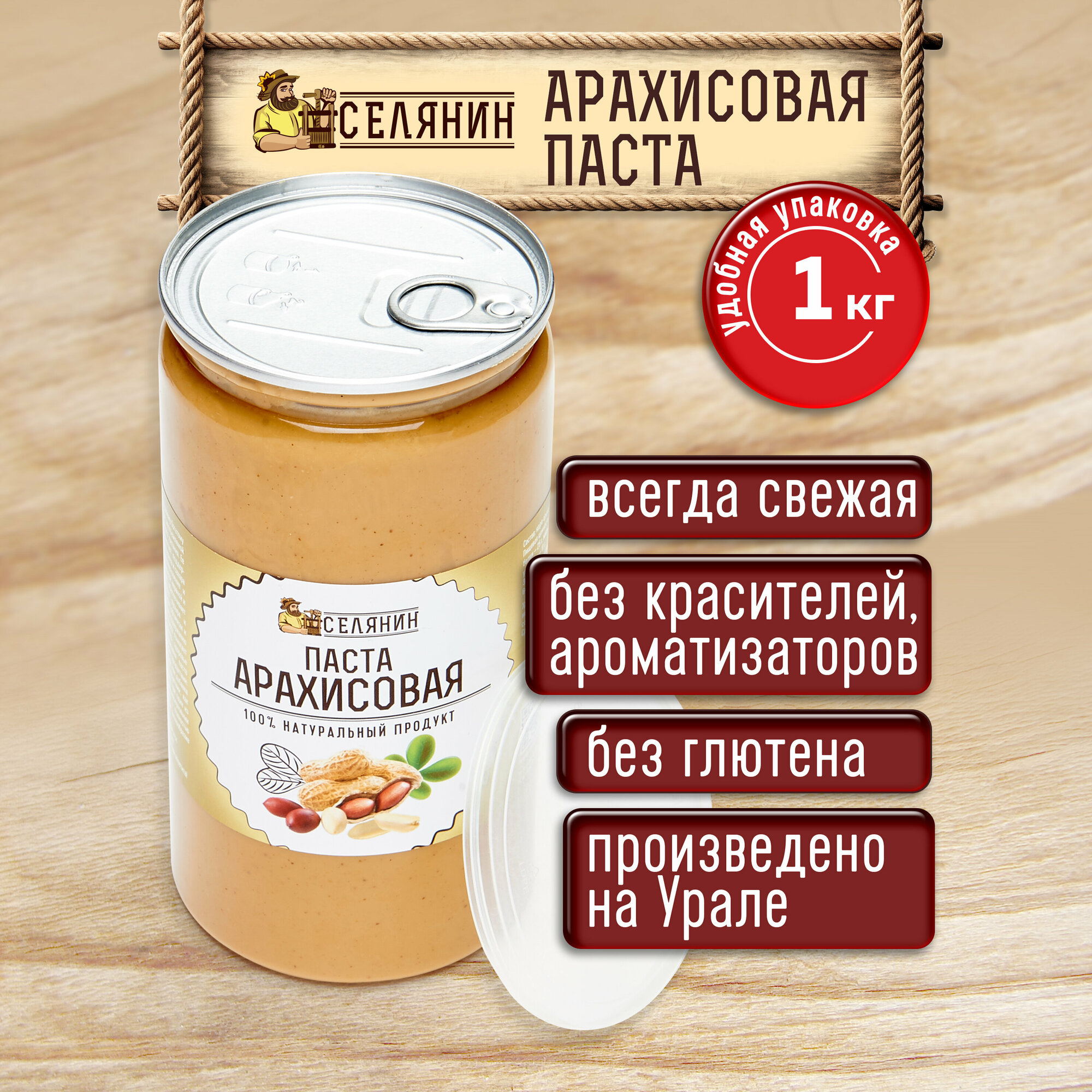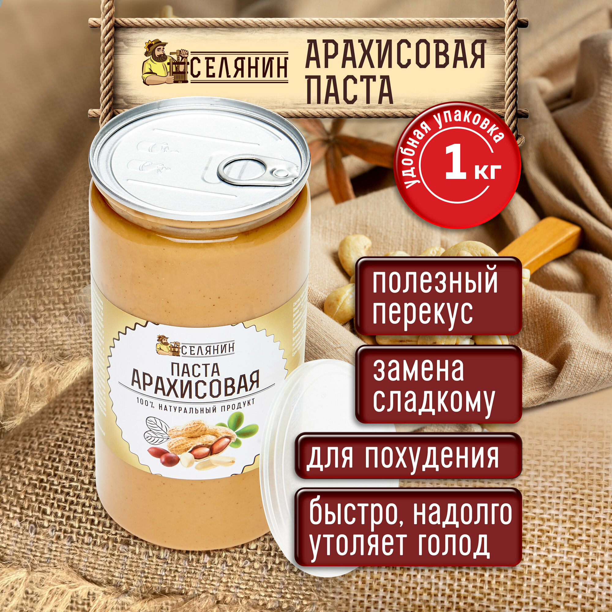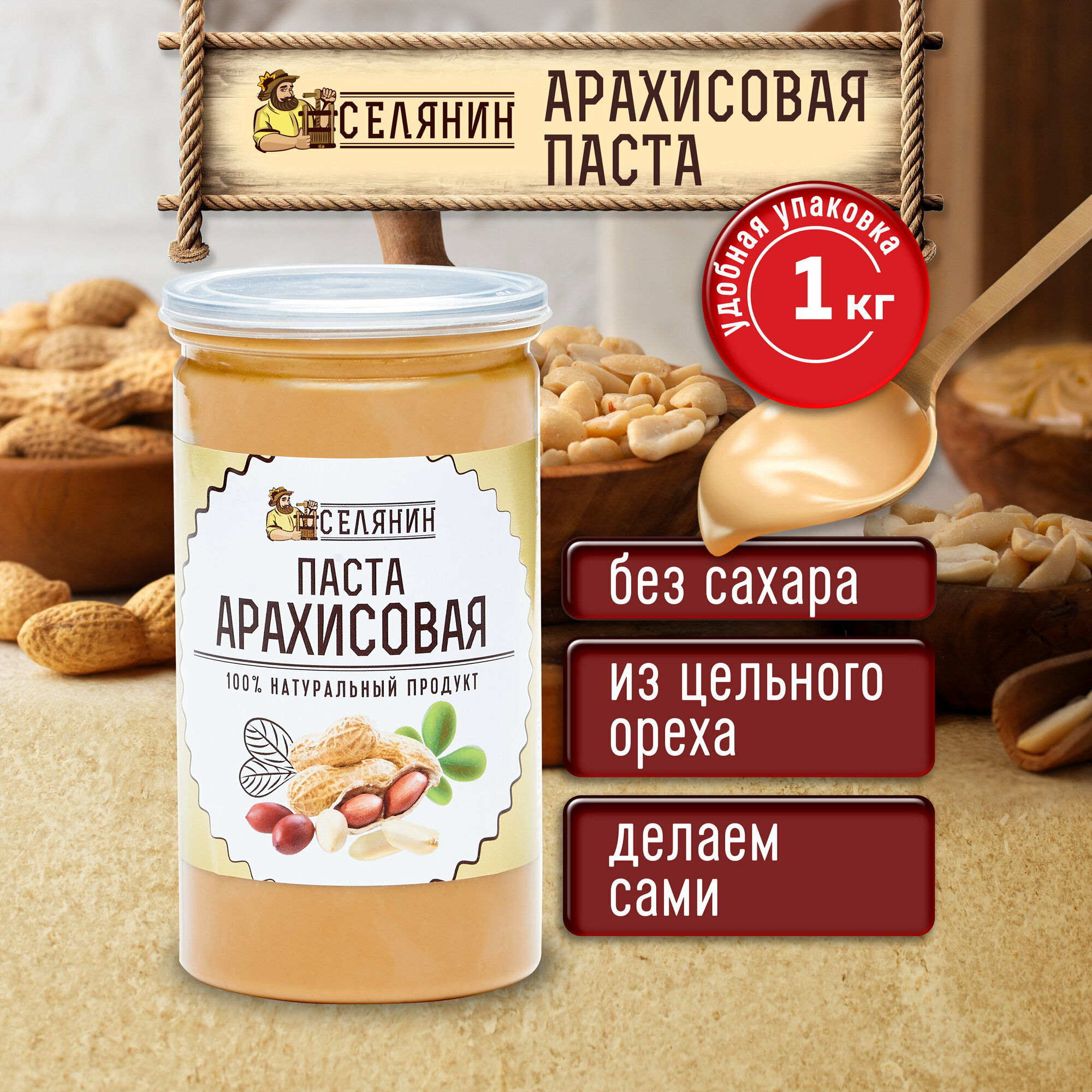 10 цен на Паста арахисовая 1кг., без сахара и соли, натуральная, 100% арахис