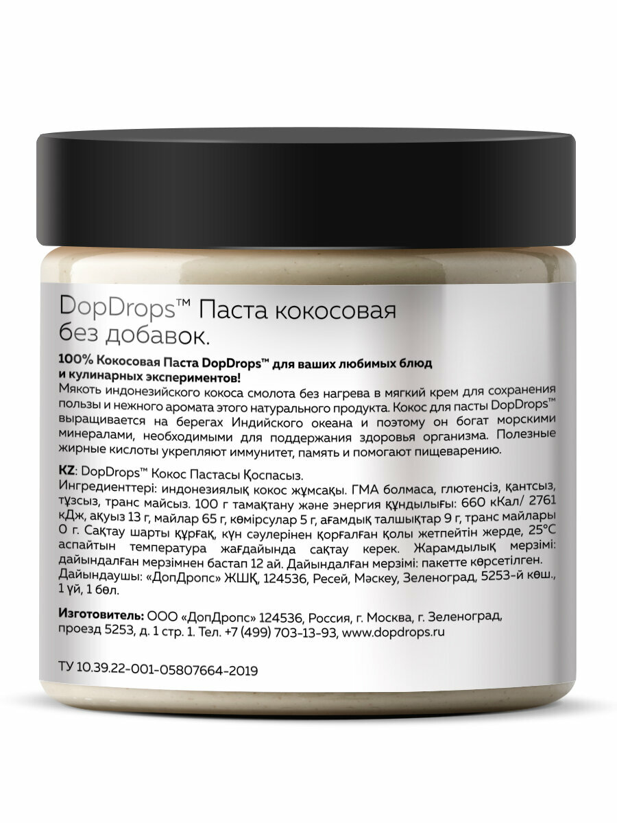 Кокосовая паста DopDrops ( кокос ) урбеч без сахара 500 г информация: