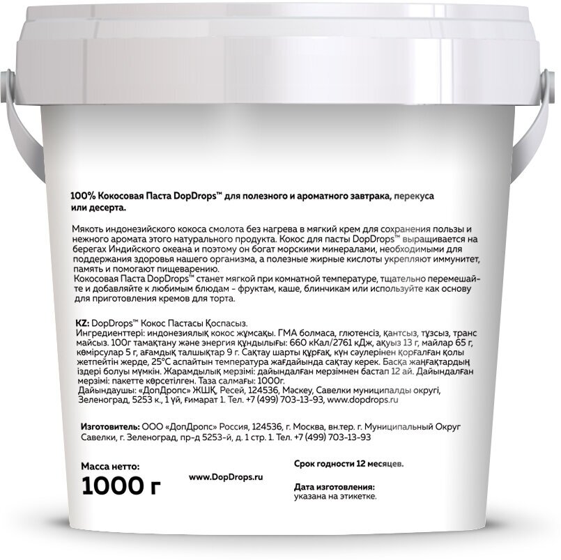 Кокосовая паста DopDrops ( кокос ) урбеч без сахара 1000 г информация: